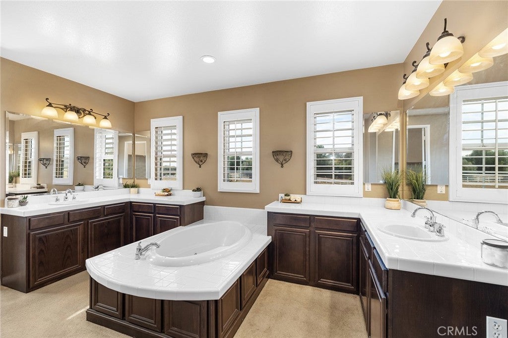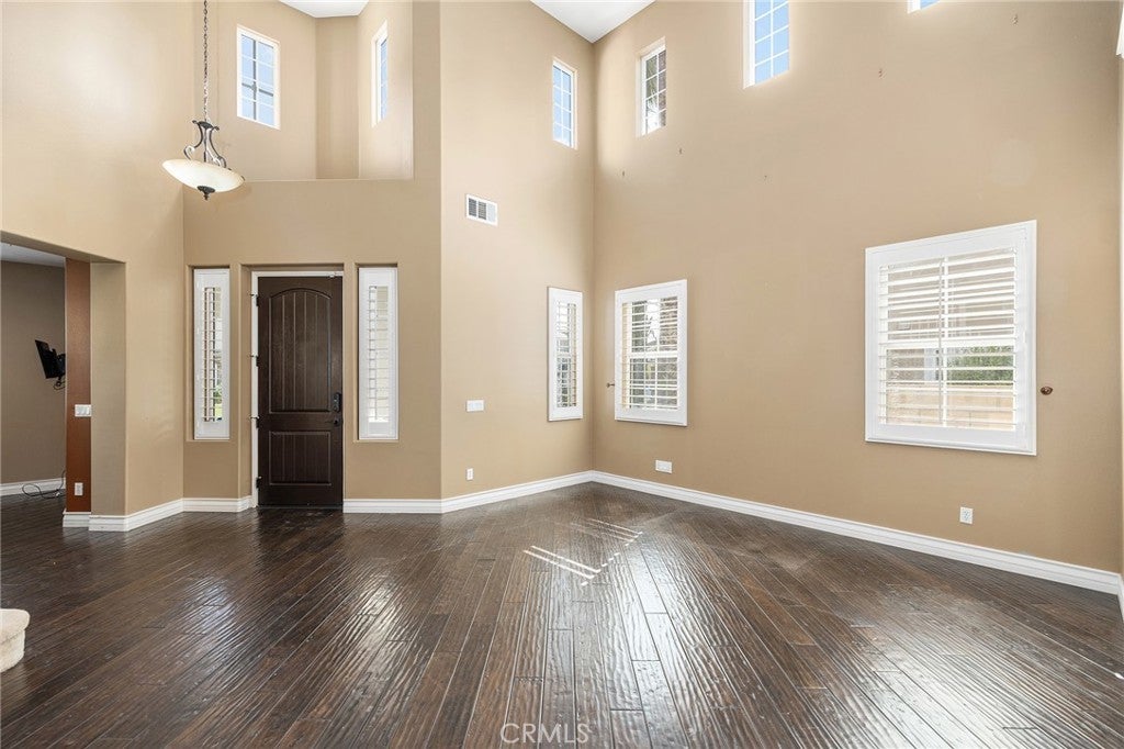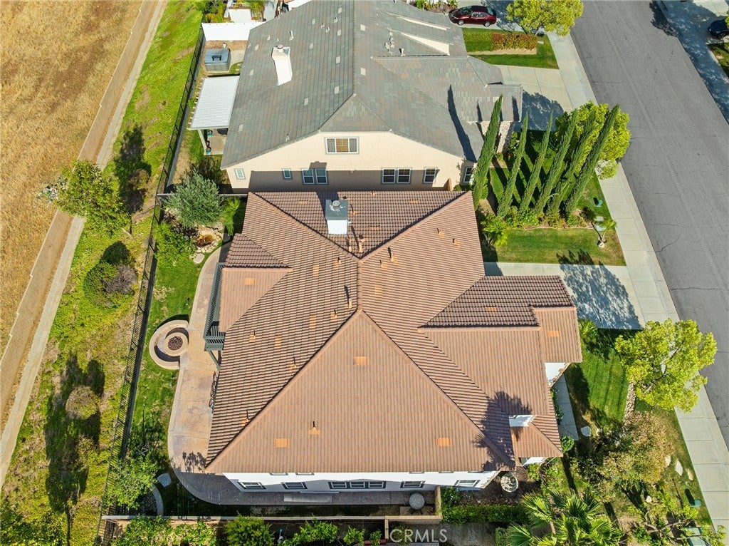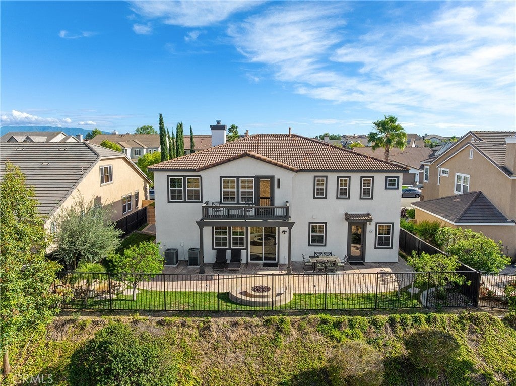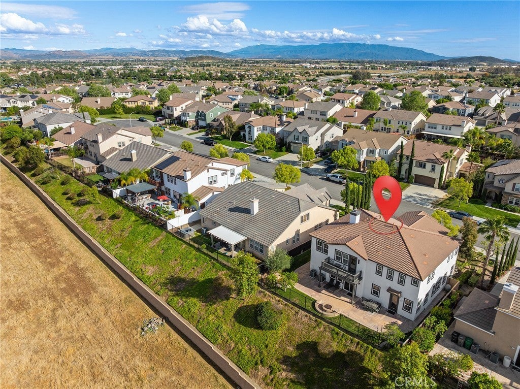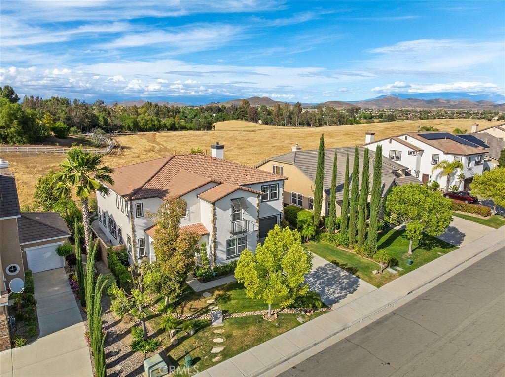 Stunning, highly upgraded home with gorgeous mountain views and open space behind you! Step inside to discover a thoughtfully designed layout centered around the heart of the home—the massive kitchen, showcasing breathtaking views right from the kitchen sink window. The kitchen is beautifully appointed with custom quartz countertops, a custom backsplash, and upgraded stainless steel appliances, including a double oven, 5-burner cooktop, dishwasher, microwave, and refrigerator. Enjoy a spacious secondary dining area that comfortably fits a large table, along with two eat-at bar areas—one at each end of the kitchen—and an abundance of countertop and cabinet space. The kitchen opens seamlessly to the inviting family room, complete with stunning mountain views and a cozy fireplace. The formal living room features soaring ceilings, abundant natural light, and beautiful wood flooring, flowing effortlessly into the elegant formal dining room—perfectly designed for both everyday living and entertaining. Off the formal living room, you’ll find a spacious office/den or possible 5th bedroom with a practical walk-in closet—ideal for storage and flexible living. Gorgeous plantation shutters elevate the homes curb appeal. The expansive primary suite offers incredible views of mountains and open space, along with a private balcony to take it all in. The oversized primary bathroom features a large step-in shower, an elegant jacuzzi soaking tub, dual vanity areas, an abundance of countertop space and two huge walk-in closets. There is a generously sized secondary suite including a private full bathroom,spacious walk-in closet—perfect for guests or multigenerational living. There are 2 additional bedrooms that share a hall bathroom with dual sinks and tub/shower combo. The upstairs laundry room adds convenience with built-in cabinets and utility sink. Step outside to your backyard retreat, where you’ll enjoy incredible views, a covered patio, tranquil waterfall pond, green grass, fruit trees, and a gas fire pit with custom concrete seating—perfect for relaxing or entertaining. Exceptional curb appeal with lush, mature landscaping with lighting, a covered front porch, and modern exterior light fixtures that enhance its beauty day and night. Don’t let the 2-car garage door fool you—this home includes a highly desirable 3-car tandem garage, offering plenty of extra space for storage, toys, or even a workshop setup. The extra-long driveway provides ample additional parking.