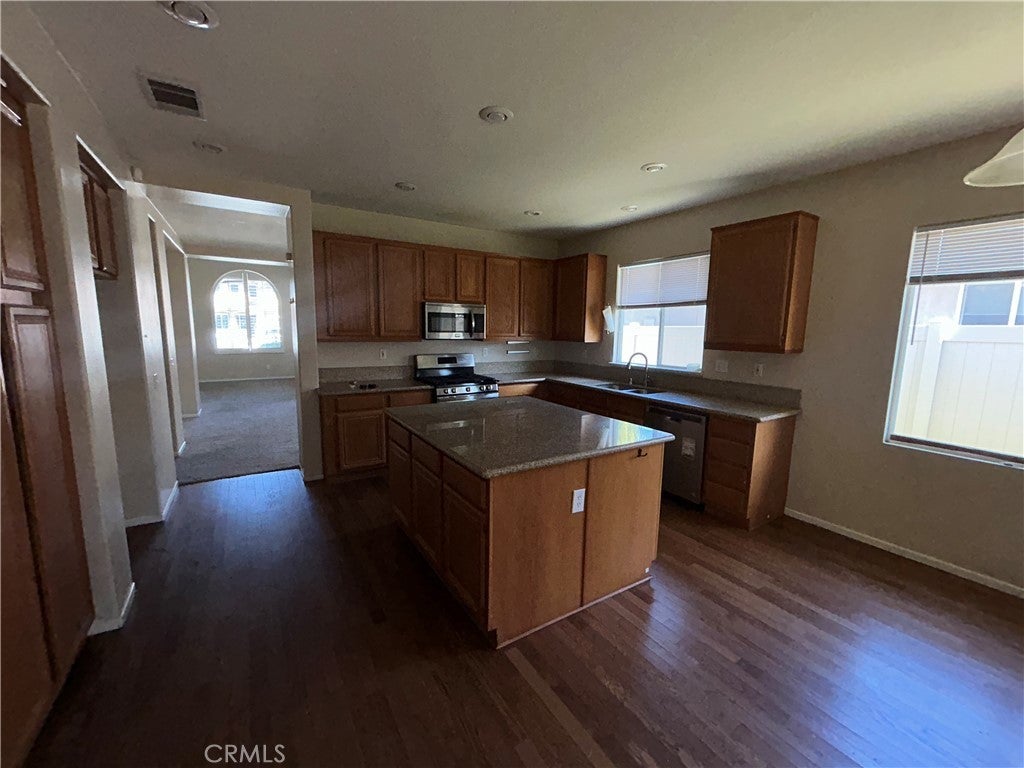 Spacious single-story 4-bedroom, 2-bath Winchester home with approximately 2,064 sq ft. Features include upgraded flooring, fresh interior paint, granite kitchen countertops, stainless steel appliances, open island kitchen, formal dining area, 9-foot ceilings, central A/C, forced-air heat, and attached 2-car garage. Landscaped backyard with covered patio. Convenient location near parks and shopping, dining, and services at French Valley Village Center. Located within the Temecula Valley Unified attendance area. Tenant to verify all information, including school assignment, features, and availability.