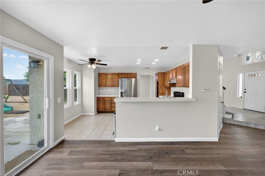 Welcome to this beautifully designed home, ideally situated on a quiet cul-de-sac offering space, comfort, and incredible potential! Featuring two separate living areas downstairs, this layout is perfect for both entertaining and everyday living. The open-concept floor plan is filled with abundant natural light, creating a bright and inviting atmosphere throughout. The kitchen overlooks the cozy family room, complete with a charming brick fireplace—ideal for gathering with family and friends. Upstairs, you’ll find three spacious bedrooms plus a versatile loft, all with ceiling fans for added comfort. The loft is perfect for a home office, playroom, or additional living space. The primary suite is a true retreat, featuring a private balcony where you can take in breathtaking mountain views—perfect for morning coffee or evening relaxation. Situated on a large lot, the backyard offers endless possibilities with plenty of room to add a pool, ADU, or create your dream outdoor oasis. This home combines functionality, comfort, location, and opportunity—don’t miss your chance to make it yours!