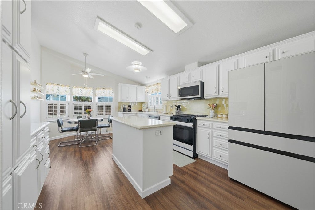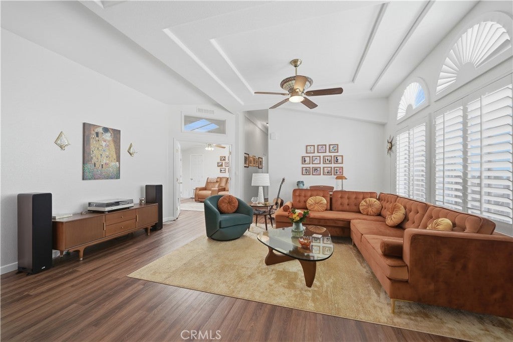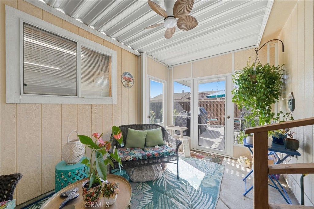 Welcome to this beautifully upgraded 3-bedroom, 2-bath home located in the highly desirable 55+ community of Sun Meadows. Thoughtfully updated throughout, this home offers modern comfort, stylish finishes, and low-maintenance living. Step inside to find all-new interior paint in a neutral palette, complemented by durable and stylish Cortec 8mm WPC stain-resistant flooring throughout the main living areas and plush new carpet in the bedrooms. The home is enhanced with crown molding in the kitchen, living room, hallways, bathrooms, and bonus room, adding an elegant touch. The upgraded kitchen is a true standout, featuring professionally refinished cabinetry, a sleek glass tile backsplash, brand-new high-end Samsung Bespoke white glass appliances, a new double sink and faucet, updated lighting, and a ceiling fan. Plantation shutters over the sink bring in natural light while maintaining privacy. Both bathrooms have been tastefully updated with refreshed cabinetry and fixtures, primary bath has separate shower and jetted bathtub. The spacious primary suite includes a newly installed ceiling fan for added comfort. Additional interior highlights include an updated indoor laundry room with both gas and electric hookups, plus a convenient pantry and built-in desk area—perfect for everyday functionality. Enjoy outdoor living with an extended, enclosed screened-in patio and a low-maintenance yard featuring turf in the front and mature citrus trees—including Meyer lemon and mandarin orange in the backyard. Auto enthusiasts and hobbyists will appreciate the large 2-car garage with a 10x10 extended workspace, built-in storage cabinets, and overhead storage. Residents of Sun Meadows enjoy resort-style amenities with no additional fees, including a pool, spa, sauna, tennis court, putting green, horseshoe and bocce areas, a 4-lane shuffleboard court, arts & crafts room, and a spacious clubhouse with card rooms, billiards, lounge, kitchen, and event space. The community is pet-friendly (up to two pets) and offers an active social club, creating a vibrant and welcoming environment. Experience the perfect blend of affordability, comfort, and community living with reasonable land lease rates in one of the area’s most sought-after 55+ neighborhoods.