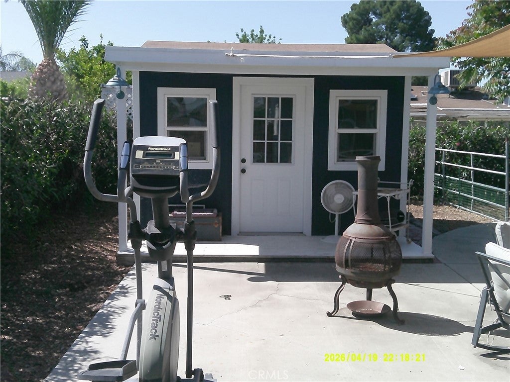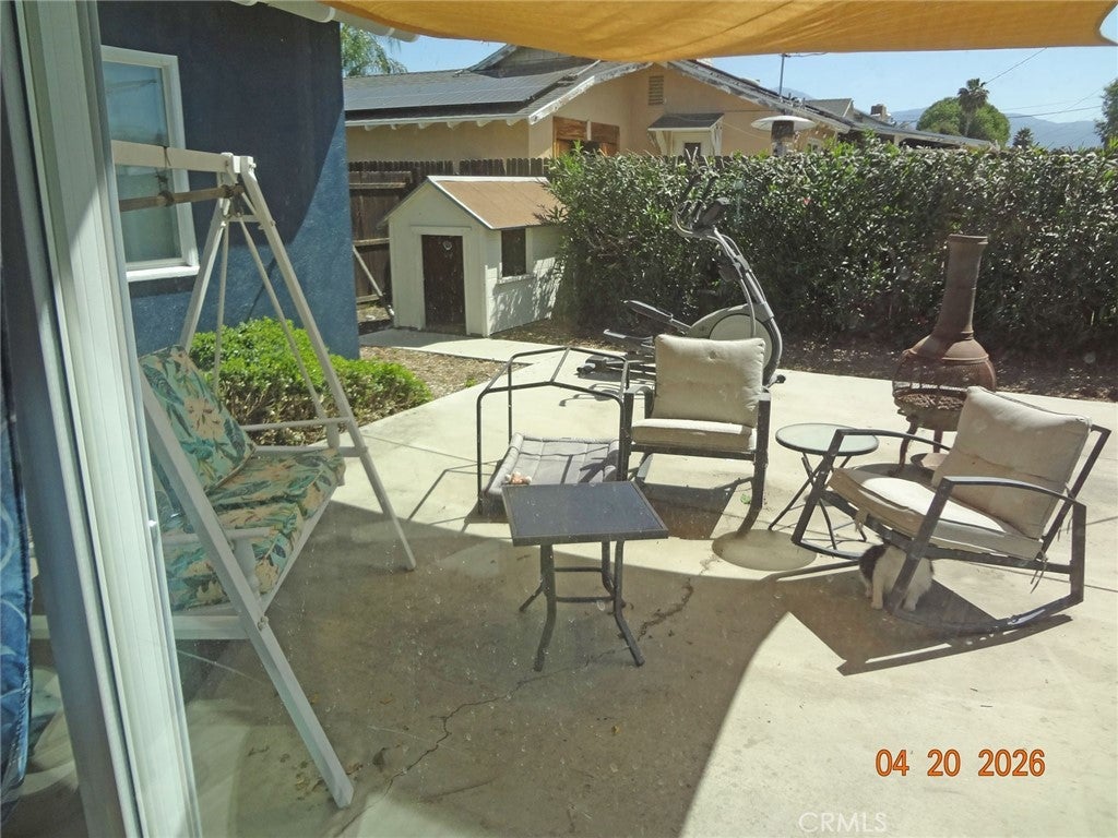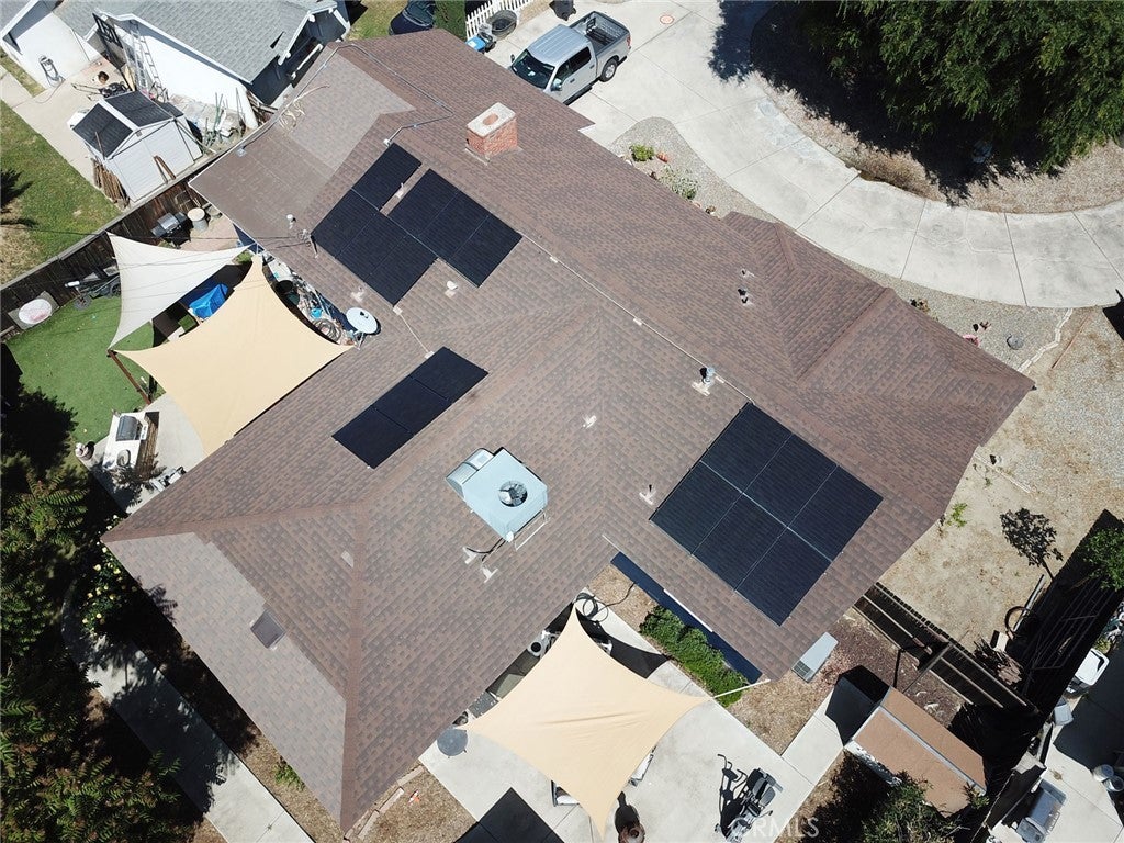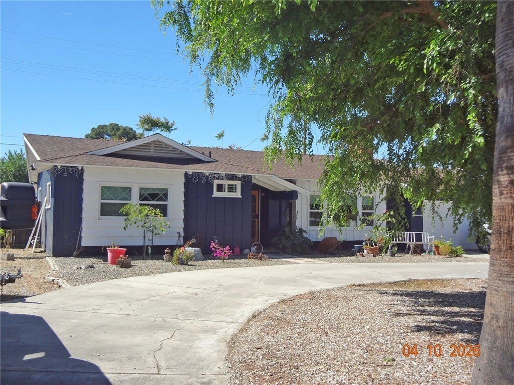 Charming excellently totally refurbished family home in E. Hemet. So much to describe and so well done! Totally perimeter fenced large lot for dogs, RV parking, circular driveway. New paint interior and exterior. The color of the exterior is dark blue walls with white trim. Interior is various pleasing colored walls. Both bathrooms have been remodelled and both have walkin showers. The master bedroom suite is at the front of the house and there is a huge additional bedroom added at the back of the house with sitting area and sliding glass doors to it's own patio. There is also a smaller third bedroom. The kitchen has new appliances, dishwasher and gas stove, and granite counter tops. Flooring is all new laminate throughout the house. New windows at the front of the house. New leased solar system with Tesla battery backup system. The lease will be transferred to a buyer. Composition roof is in excellent condition and is approximately 5 to 6 years old. All new plumbing in the interior of the house. Desert landscaping in the frontyard. Auto sprinkler system. Separate approx. 10' X 10' building, as one room, added in the backyard would make a great office, craft room, exercise room or... You just have to see it all!