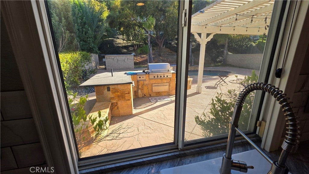 This is no regular home! 5 bed, 3 bath modern pool home. FULL BED+Bathroom (w/shower) ON FIRST LEVEL. 2019 LG 7kw solar system w/ Enphase IQ micro inverters and envoy, 100% owned outright! A N14-50 240v electric car charger in garage. All windows are covered w/plantation shutters. Downstairs has designer tile, surround sound, designer stone accent walls and a fully renovated 2016 kitchen w/ marble counters, soft closing cabinets, and stainless steel appliances. Designer light switches, wall paper, and accent walls with high baseboards. Downstairs bedroom, bathroom, laundry room, and direct access to the 2 car garage. Upstairs are 4 good sized bedrooms w/ in-unit closets, linen storage area with granite tops, and a primary suite w/large bathroom with tile floors, dual vanities, a separate tub/shower, and a large in-unit closet w/organizers. The entire primary bathroom was renovated in 2016. The private backyard is made to entertain w/ a sparkling salt water pool w/removable pool fence, built in BBQ w/granite top, a covered patio, and a nice grassy area w/ Dog run, and privacy trees at the rear. Quiet street.