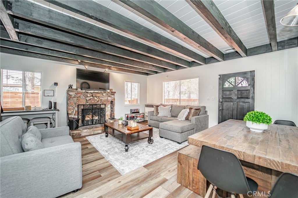 Welcome to a retreat nestled in the beautiful Boulder Bay area of Big Bear Lake. Enjoy a cup of tea or coffee on the newly installed front deck, or head to the back pergola and take in the peaceful privacy of the new, fully fenced yard. This beautiful cabin features an oversized, two-story detached 2-car garage that can be converted into a game room or additional living area, a rare feature in Big Bear Lake. This exceptional property has been renovated and is waiting to become your dream second home or a fabulous short-term rental. It is just 5 minutes to the village, 9 minutes to the ski resort, and within walking distance of the lake.