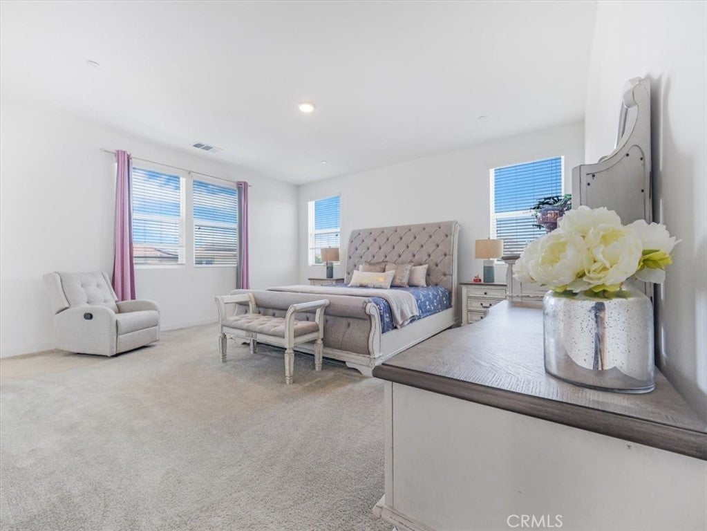 This spacious two-story residence located in the highly desirable Park Place community of Ontario Ranch, offers 4 bedrooms, 3 bathrooms, and 2,441 sq ft of well-designed living space. Paid off solar for energy efficiency. Nestled with no rear neighbors for added privacy. This home features open-concept living room, dining area, kitchen with large central island and ample cabinet spaces. Enjoy the convenience of a downstairs bedroom and bath, ideal for guests, office or multigenerational living. Upstairs, you’ll find a versatile loft space and laundry room; large primary suite includes a walk-in closet, dual sink vanity, soaking tub, and a glass-enclosed shower; two additional bedrooms and a full bath. Low-maintenance front and backyard . Resort-style HOA amenities, including a swimming pool and spa, tennis courts, fitness center, theatre room, and community clubhouse. Conveniently located near schools, markets, shopping, and dining.
