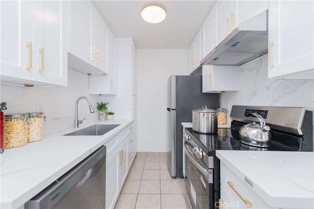 Welcome to this warm and inviting one-bedroom, one-bathroom condo featuring a stunningly upgraded kitchen with the all new crisp white shaker-style cabinets, stylish gold hardware, and luxurious Calacatta marble-looking quartz countertops. The kitchen is completed with a large stainless-steel single-basin sink and a full suite of brand-new stainless-steel appliances—including refrigerator, range, hood, and dishwasher. This cozy unit has been thoughtfully updated throughout, boasting smooth ceilings, fresh interior paint, new window coverings. Low maintenance engineered wood flooring throughout living areas. Modern lighting fixtures further enhance contemporary aesthetic. Additional highlights include a walk-in closet, a wall-mounted AC unit, and two tandem parking spaces. The well-maintained, tree-lined complex offers secured keyed entry, an elevator, a peaceful courtyard, and routine sanitary cleaning in common areas, plus laundry. HOA covers water/hot water, and earthquake insurance. Ideally located within walking distance to vibrant downtown Culver City, you'll enjoy easy access to trendy restaurants, cafés, and markets such as Erewhon and Trader Joe’s. Convenient proximity to the freeway, Metro station, and the upcoming Apple office campus makes this home a commuter’s dream. Don’t miss your chance to live in one of LA’s most desirable and dynamic neighborhoods. Don’t miss it. Schedule your showing today!