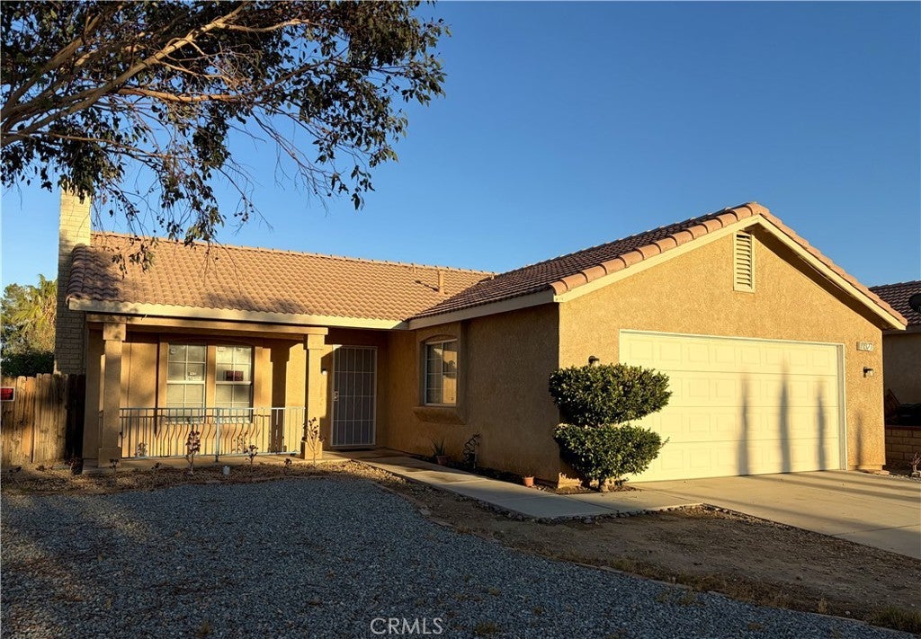 Back on the Market Through No Fault of the Seller. Beautifully renovated, this inviting home sits on a generous lot with ADU potential and showcases a renovated kitchen and bathroom, both enhanced with sleek quartz countertops. The open-concept layout features vaulted ceilings, a warm fireplace, and abundant natural light, all complemented by stylish tile and luxury vinyl plank flooring. Commuter friendly and located near Highway 395 and Air Expressway, this home blends comfort with convenience with quick access to Starbucks, Stater Bros, Walmart, Denny's and much more. Recent upgrades include a new A/C system and water heater, ensuring year-round comfort and peace of mind. Step outside to a low-maintenance front yard with gravel and vibrant desert plants for striking curb appeal. The private backyard patio offers the perfect setting to relax or entertain while enjoying peaceful views. With modern upgrades throughout, this move-in ready home is offered as-is, ready for its next chapter.