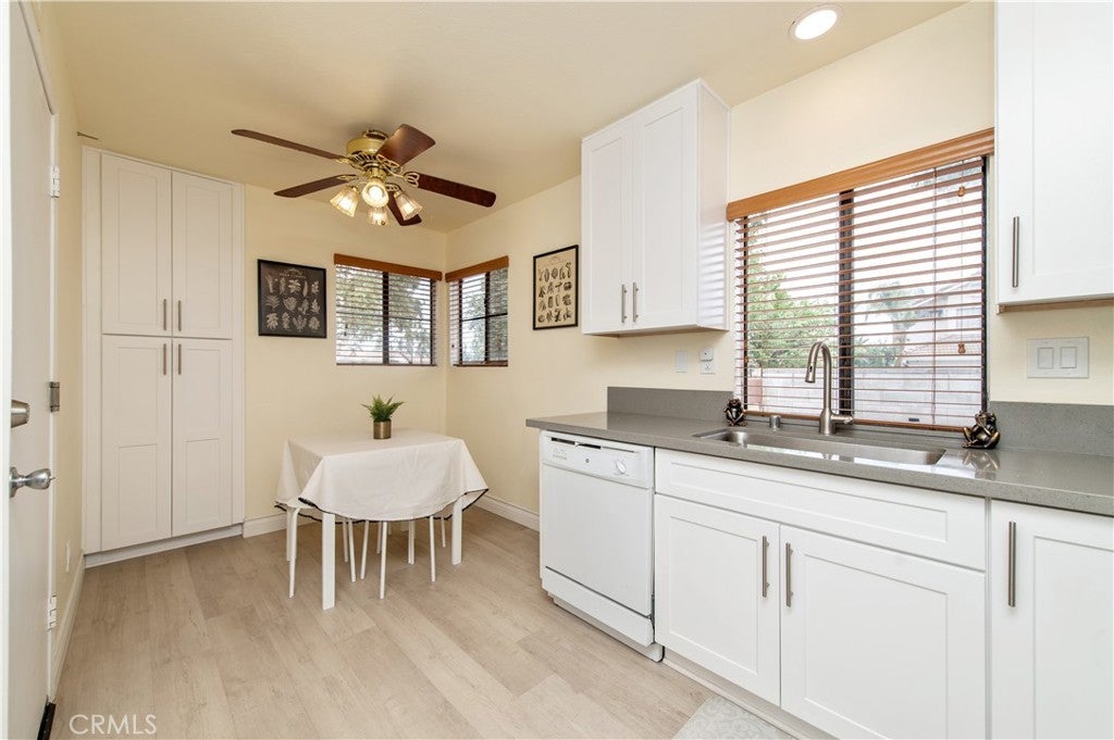 Welcome to this inviting single-story home, offering 3 bedrooms and 2 full bathrooms in a highly desirable and ultra-quiet Rancho Cucamonga neighborhood within the sought-after Los Osos High School boundary. Perfectly situated on a south-facing corner lot at the end of a cul-de-sac, this residence features a spacious private yard and a wonderful sense of light and openness throughout. With soaring ceilings and an open floor plan, the living and dining areas feel bright and connected. A sliding glass door opens to the backyard—remodeled just 3 years ago with red and gray brick pavers—providing generous room for outdoor living, basketball, badminton, or hosting gatherings with family and friends. The home is enhanced with new laminate flooring throughout. The updated kitchen showcases crisp white cabinetry, elegant Crystal Grey countertops, and a cozy breakfast nook. Down the hallway are three well-appointed bedrooms, including a lovely primary suite and two generously sized secondary rooms. A unique highlight is the atrium located just off one of the bedrooms—perfect for relaxation or as a special indoor-outdoor retreat. This home perfectly balances comfort and convenience: just minutes from parks, top-rated schools, and the vibrant Victoria Gardens, with Ontario Mills and Ontario Airport nearby for shopping, dining, and entertainment. Easy freeway access adds to the appeal. A true must-see—this one won’t last!
