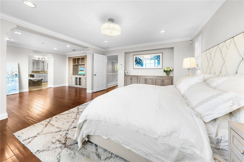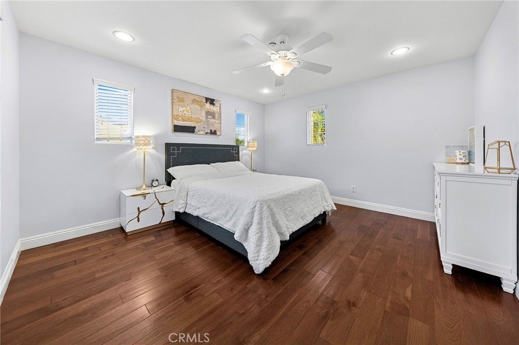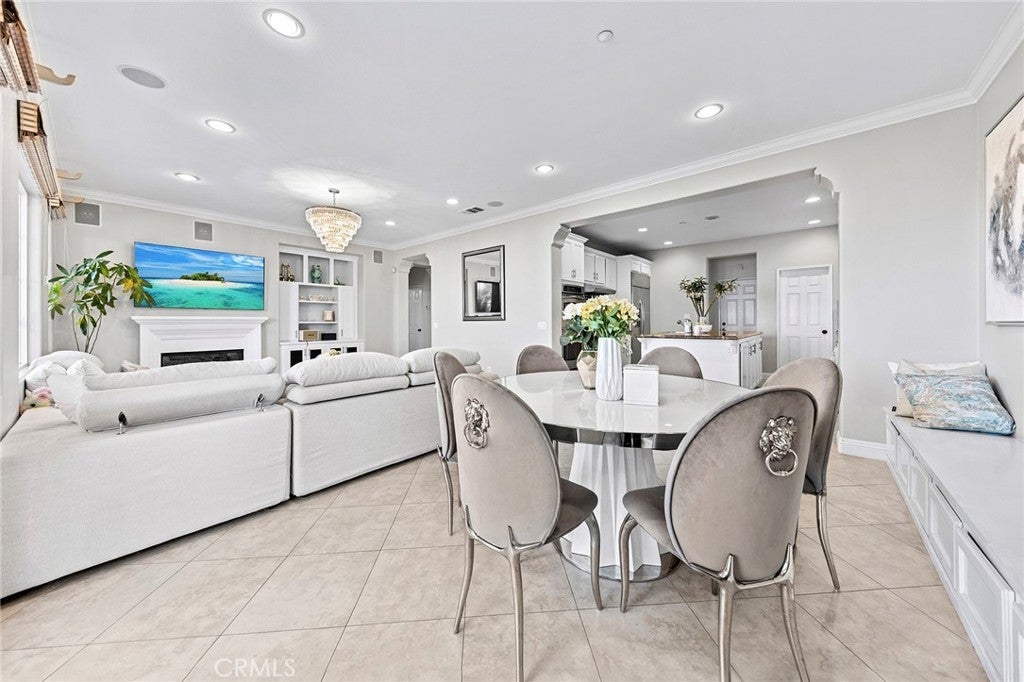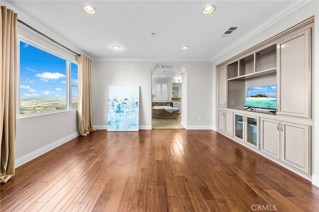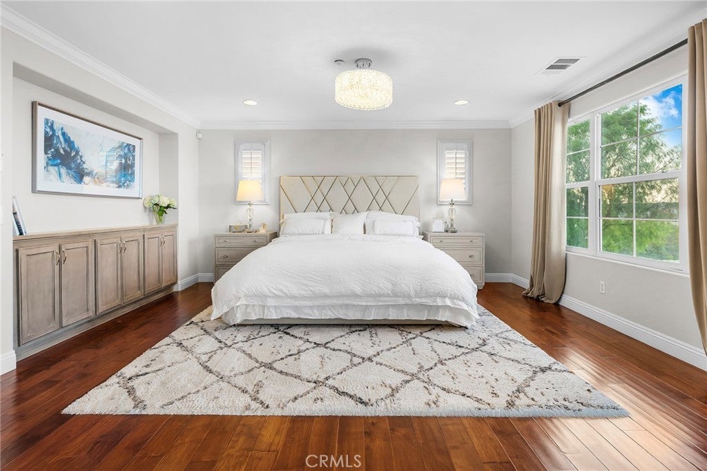 VIEW! VIEW! VIEW! Panoramic snow mountain and city lights Views! Very well maintained and upgraded executive property in Sycamore Heights! Great curb appeal. 5 bedrooms, 3 bathrooms (one bedroom one bath downstairs), plus a loft upstairs, 3 car attached garage. Enter through the private wrought iron gate to the expansive courtyard. Bright and spacious living room. Formal dining room with custom chandelier. Large family room with fireplace and media center. The gourmet kitchen boasts ample storage space with walk-in pantry, granite countertops, a center island, and a breakfast nook opening to the backyard, premium stainless-steel appliances, including 5-burner cooktop, built-in refrigerator, double-ovens, and dishwasher. The downstairs bedroom and remodeled full bath add extra convenience. Upstairs features a huge bonus room, perfect for entertainment. Primary bedroom with retreat area and large walk-in closet with organizers. Primary bathroom features soaking jacuzzi tub, separate shower with frameless glass enclosures, and double vanities. Upstairs includes three additional bedrooms. Other notable features include: Custom two-tone interior paint, engineered wood floors in living room, formal dining room and bedrooms, luxury custom window curtains, plantation wood shutters and roller shades, crown moldings, chandeliers, recessed lights, two central A/C units, upstairs laundry room with sink. Professionally landscaped gardens, palm trees and flowers, aluminum patio, elevated sitting area. Breathtaking 180-degree of mountain and city lights views. Excellent Chino Hills Schools, California Distinguished Wickman Elementary. Convenient location, close to shopping centers, restaurants, and easy access to freeways. This meticulously upgraded property is a true gem!