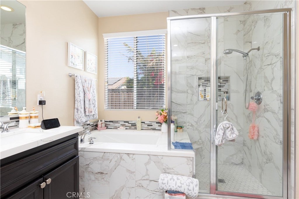 Welcome to your dream home in Eastvale! Nestled on a quiet cul-de-sac in a beautifully maintained suburban neighborhood, this remodeled 4-bedroom, 2-bath residence offers the perfect blend of comfort, style, and functionality. Step inside to find an open, light-filled floor plan with new hardwood floors. The heart of the home is the stunning kitchen featuring a large island, new countertops, and modern cabinetry—ideal for gatherings and entertaining. The spacious primary suite boasts a luxurious bathroom with dual sinks, soaking tub, and walk-in closet, creating your own private retreat. Additional highlights include a 3-car garage with ample storage space, tile roof, and updated backyard with fresh cement slabs and a new patio cover, perfect for relaxing or hosting friends. Located near restaurants and shops, and excellent rated schools. This move-in ready home has been thoughtfully upgraded inside and out, offering a wonderful opportunity for its next family. Don’t miss your chance to own this gem in Eastvale!