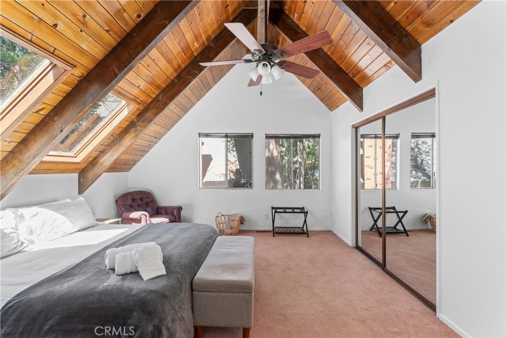 BACK ON THE MARKET! Buyer didn't perform! Check the comps! Priced to sell! Super cool Prow style home with lake rights located on over 1/3rd acre with ALREADY built structures ready to convert to ADU's. Ground level home over 2,000sf, 4bd/3baths, soaring beamed ceilings, walls of glass, rock fire place, and a wrap-around deck. Open-style kitchen with an island and direct access to the deck. The home is perfect for entertaining! Main floor offers 2 bedrooms and 1 full bathroom. Top floor has a loft/lounge area plus an extra large Primary suite with beamed vaulted ceilings and a separate bathroom. The lower level has a ginormous room that can be another Primary suite or family room with another bathroom. Direct access to the secured back yard, and a park-like setting with fabulous evergreens and a seasonal stream. Parking for at least 6 cars PLUS a HUGE custom built 3 story structure that offers a XTRA large 2 car garage, a huge enclosed area above the garage(possible ADU) and an expansive workshop underneath the garage(possible Junior ADU). Home is currently used as a part-time AirBnB and is approved to sleep 12 people comfortably. Tons of possibilities and truly a one-of-a-kind! Must see!