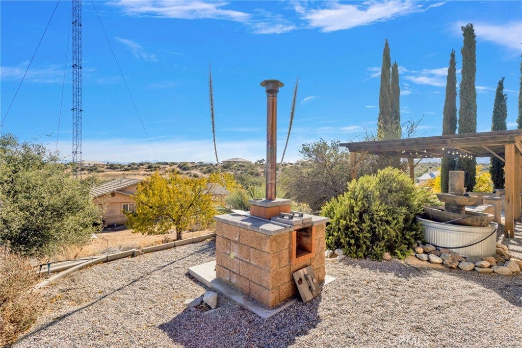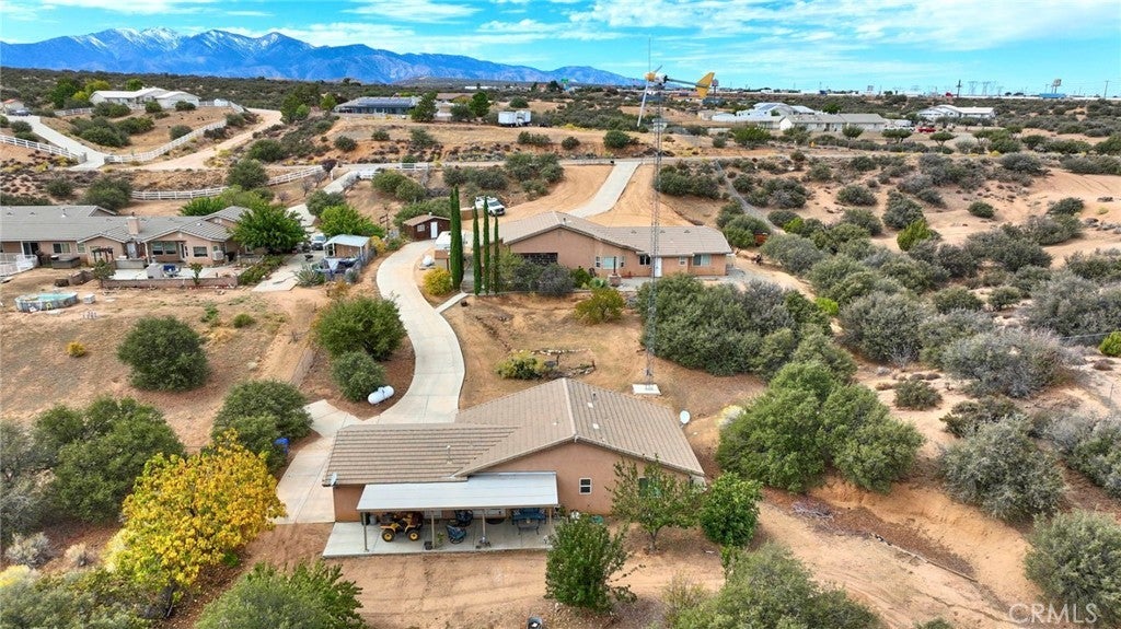 Two Homes on One Lot — The Perfect Family Compound! Rare Oak Hills property featuring two beautiful homes on almost 2.5 acres! The main house offers three bedrooms, an office that could easily be a fourth bedroom, and two baths. 1,699 sq. ft. with living & family rooms, cozy wood-burning stove, office w/double French doors, tile & carpet flooring, central heat/air, ducted swamp cooler, and 3-car attached garage. Outdoor features include covered patios, an outdoor pizza oven, an above-ground spa, RV parking w/full hookups, and a windmill for self-sufficient living for both homes. Are you tired of paying high utilities? These homes are for you! Second home approx. 1,120 sq. ft., three bedrooms, two baths, 2-car attached garage, central heat/air, and ducted swamp cooler. Fully fenced property includes chicken coop, garden sheds, fruit trees, and separate propane tanks for each home. Conveniently located just minutes from the freeway, offering easy access while enjoying peaceful rural living. Experience true Oak Hills country life — wide open space, comfort, and privacy all in one, surrounded by breathtaking million-dollar views!
