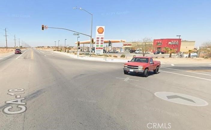 Prime Commercial Lot. At signalized corner with existing gas station (Shell Station is separately owned). High traffic corner - both from commercial traffic along east-west Palmdale Rd, and north-south traffic along Bellflower St to/from Adelanto's best residential areas. Nice, flat and level property has all utilities in street and is ready to be developed. Attached Site Plan for premium commercial shopping center was proposed - including subdivision into 7 separate lots. Still time to modify. Just need Your vision of a perfect new shopping center. Submit all offers.