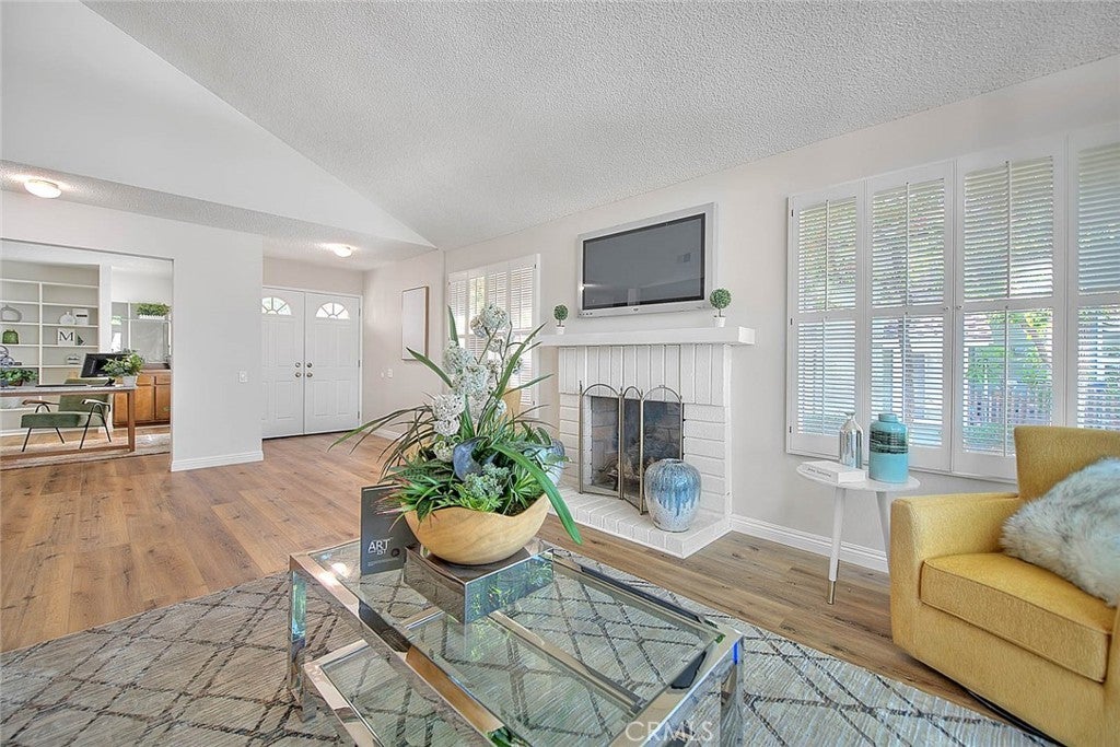 View, View, View ! A beautiful Townhome located in the gated Sierra Vista Community, lots of trees and landscaping. This is the only floor plan with one bedroom and one bathroom downstairs. Open floor plan with lots of natural light, spacious living room with a brick fireplace. One bedroom downstairs seller used as an office, 3 bedrooms and 2 bathrooms upstairs. Newer laminate flooring downstairs, newer carpet at all rooms upstairs, interior just refreshed and repainted. Extra large master bedroom has a view of a snowy mountain, with a walk-in closet.. Backyard patio has a view with no neighbor behind. An attached two car garage with interior access and plenty of on-street parking for guests. HOA offers two Pools, clubhouse, basketball court, tennis courts and patrol by security guards. Excellent school boundaries of Grazide, Mesa Robles & Wilson High School are all just minutes away. Close to Shopping Mall, Bank, Restaurants and Freeways.