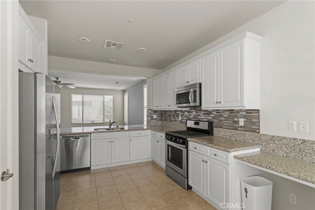 Resort-style living awaits in Solera at Apple Valley, a highly desirable 55+ community. This charming single-story 2-bed, 2-bath home features a bright open layout, a modern kitchen with white cabinetry, stainless steel appliances, and designer finishes throughout. The spacious primary suite offers a spa-like bathroom with dual vanities, soaking tub, and walk-in shower. Outside, enjoy a low-maintenance lifestyle with drought-tolerant landscaping and a finished backyard featuring a large concrete patio and artificial turf. Complete with direct 2-car garage access and exclusive community amenities—including the Aspen Clubhouse, pool, spa, and tennis courts—this home offers comfort, convenience, and carefree living.