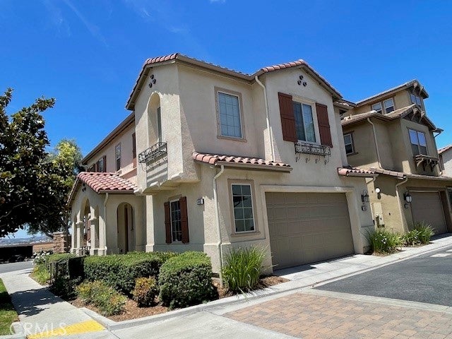 Newly remodeled and price reduced. This beautiful corner home is in the desirable community of Collage Park. Remodeling includes fresh interior paints and brand new laminate wood flooring on the second level. Enjoy resort style living with community amenities, two pools, BBQ and picnic area, 24 hour fitness center, children's water play zone and landscaped walking trails. This Mediterranean modern style home features 3 bedrooms and 2.5 bathrooms. The spacious open concept floor plan seamlessly connects the living room, dining area, and kitchen- perfect for gatherings and parties. The kitchen boasts granite countertops, chrome stainless steel like appliances dishwasher, built-in microwave, range, along with matching faucet. All bedrooms are located upstairs, with new laminate wood flooring. The large master suite includes its own private bathroom, white quartz counter, soaking tub, separate show, and a generous walk-in closet. The secondary bedrooms are a share Jack and Jill style bathroom with dual sinks and dual medicine cabinets. The laundry room offers ample cabinet storage. Other key features of this is are its private front porch and its low maintenance concrete finished backyard. The home's location is also ideal. It's just driving minutes from popular eateries and major shopping destinations such as Chino Spectrum Market place, The Shoppes at Chino Hills, Sam's Club, Trader Joe's and Costco. This home is truly turnkey and ready for its next owner.