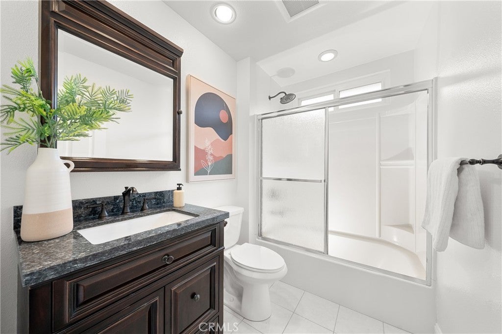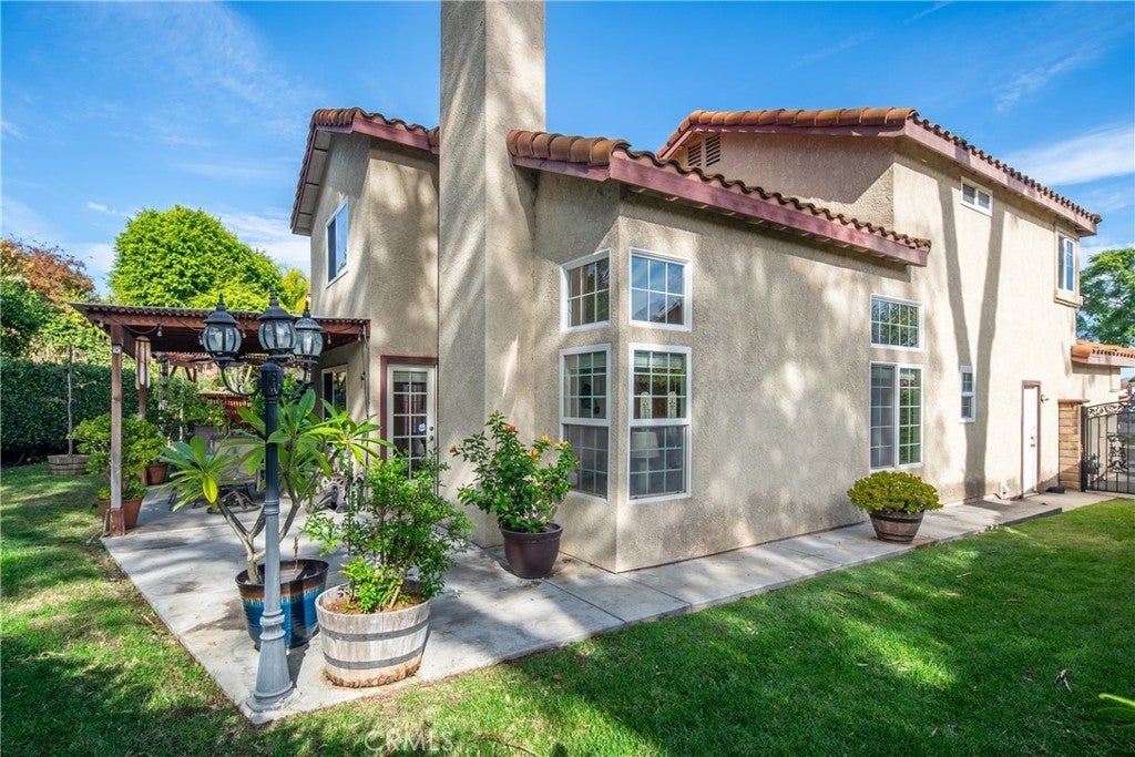 A charming home in one of Chino Hills’ most desirable neighborhoods with excellent schools by Los Serranos Country Club. Step inside to a beautifully designed 3 bedrooms, 2.5 bathrooms interior featuring, soaring vaulted ceilings, recessed lightings, durable vinyl flooring, fresh paint throughout, and an abundance of natural light streaming through the large double pane windows that brings warmth and air. The spacious living area offers an excellent entertainment wall, while the adjacent modern kitchen is equipped with granite countertops, stainless steel appliances, custom built cabinetry, and dining area with extra pantry storage. A convenient half bath is located near the attached two-car garage. Upstairs, you’ll find all three bedrooms, including a generous primary suite with a panoramic closet and a remodeled bathroom. Two additional well-sized bedrooms and a full hallway bath complete the upper level. Enjoy outdoor living with a low-maintenance backyard. 9+ feet hedges surround the property providing extra privacy, a covered patio with a beautiful outdoor dining set, a side sanctuary with fruit trees and a large shed that provides more storage for your holiday decorations. This property sits on a larger corner lot, no rear neighbors, long driveway provides extra parking at the turn point. With no HOA, low property taxes, and a short walk to Wickman Elementary, this home offers exceptional value, fitting for first time home buyers, small families or investors for rental income. You’re also just minutes from Chino Hills State Park, scenic hiking trails, shopping, dining, and the 71 & 91 freeways.