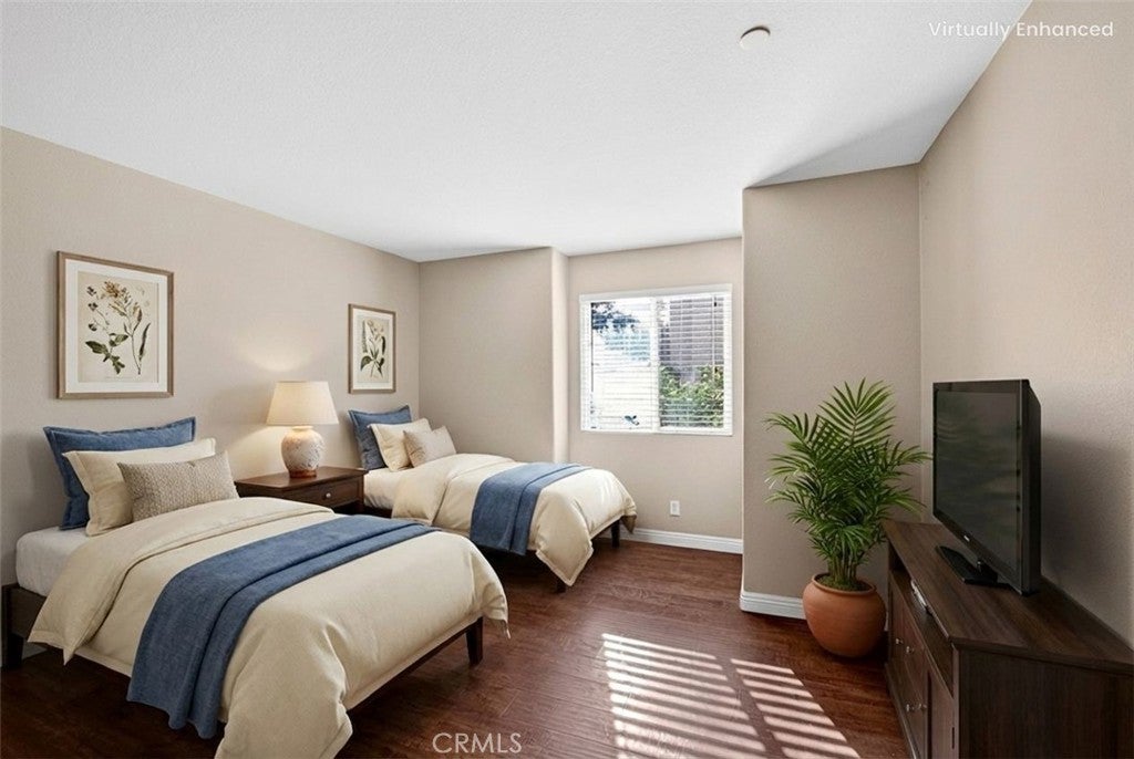 The largest floor plan in the desirable Village Walk community, offering 3 bedrooms plus a bonus room and 2.5 bathrooms. Positioned on a corner lot, the home provides abundant natural light and enhanced privacy. Its interior location offers one of the quieter and more private settings in the tract, with fewer adjoining neighbors. The main level features a living and dining area with a fireplace and balcony, along with a kitchen that includes a large breakfast bar opening to a separate family space. Upstairs, the primary suite offers a walk-out balcony, a roomy walk-in closet, and a bathroom with double sinks and a soaking tub. Two additional bedrooms share a full bath, and the laundry area is located on the same floor for convenience. A bonus room next to the garage can be used as an office or extra bedroom. The two-car garage provides direct access into the home. Additional features include a private front patio and close proximity to the community pool and park. Trash service is included in the HOA. Great Claremont School District!
