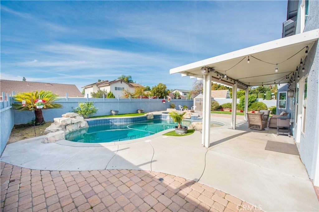 This Beautifully Updated 4-Bedroom, 3-Bath Pool Home is Located in a Desirable Neighborhood and offers the Perfect Blend of Comfort, Style, and Fun. From the moment you arrive, you’ll Appreciate the Attractive Curb Appeal, Featuring a Professionally Landscaped Front Yard with Artificial Turf for Easy Maintenance. Inside, the Home Welcomes you with a Living Room Highlighted by Wood-Look Tile Flooring, a Raised-Hearth Fireplace, Custom Lighting, and Vaulted Wood-Plank ceilings that add Warmth and Character. The Remodeled Kitchen is both Stylish and Functional, Featuring a Farmhouse Sink, Jenn-Air Double Oven, Butcher-Block Countertops, and a Tile Backsplash, Walk-In Pantry, making it a Great Space for Cooking and Entertaining.Additional Features include Ceiling Fans, Newer windows, Recessed Lighting, and Beautifully Remodeled Bathrooms with Granite Countertops. Energy-Efficient Upgrades include a Whole-House Fan and Paid-Off Solar Panels. The Backyard is Designed for Enjoyment, offering a Refreshing Pool and Spa with Pebble-Tech Finish (Children’s Safety Gate Included), a Firepit, Natural Grass Area, a Separate Artificial Turf Space, an Aluminum Covered Patio, and Storage Sheds—Perfect for Entertaining, Relaxing, and Everyday Fun. Located within the Chino Unified School District, Voted the Inland Empire’s Favorite School District, This Home Truly Has It All. A Must-See Opportunity You Won’t Want to Miss!