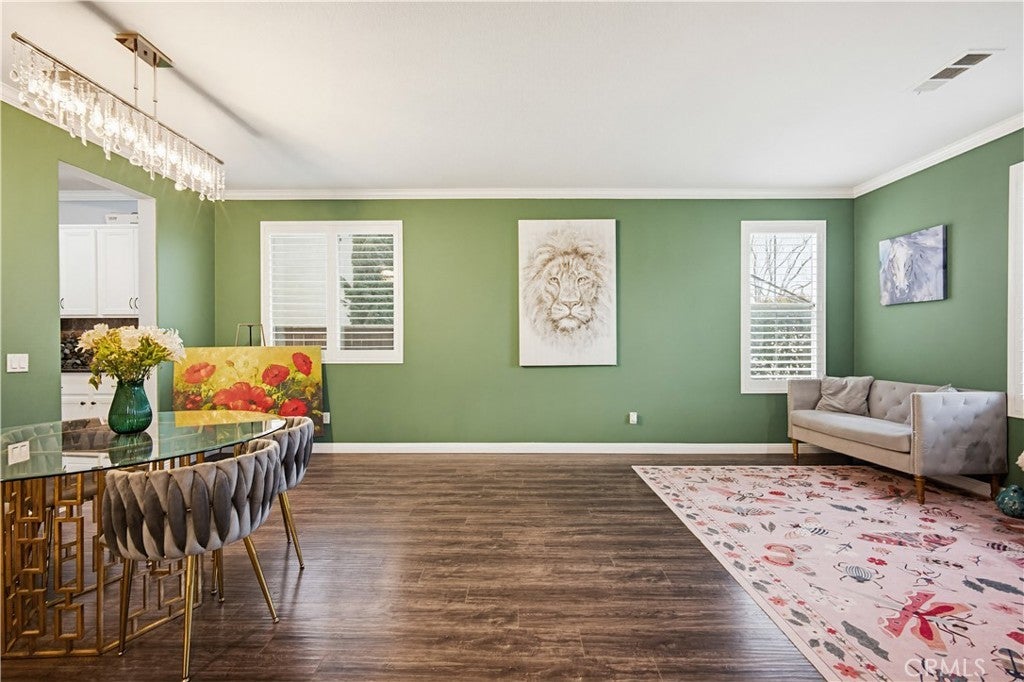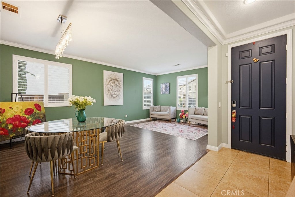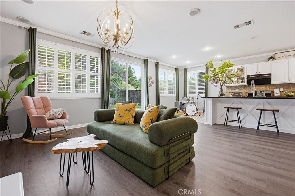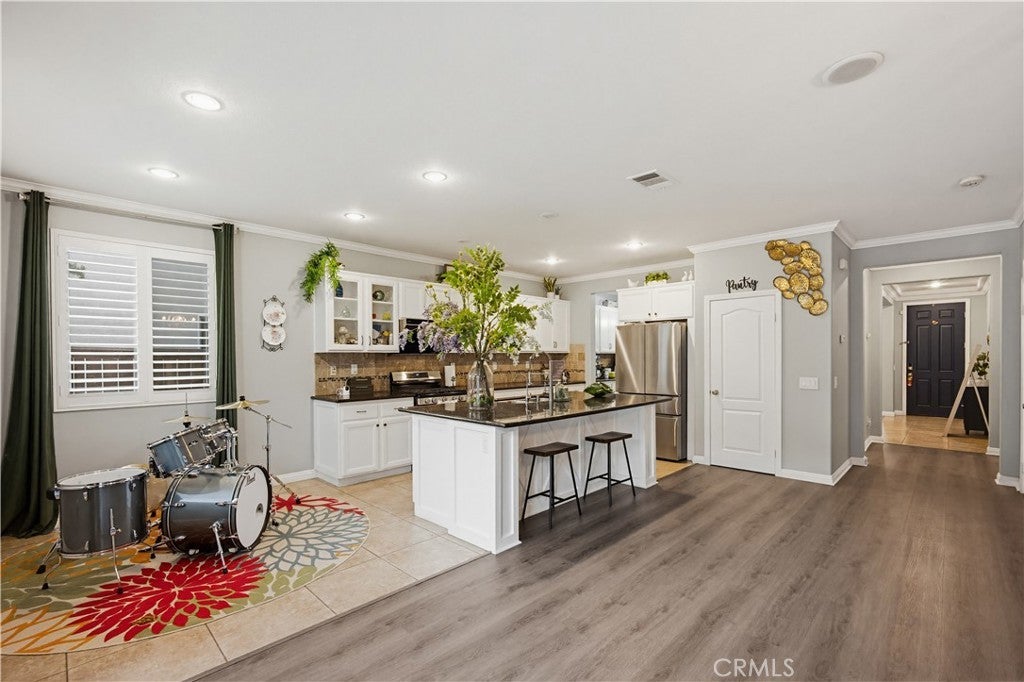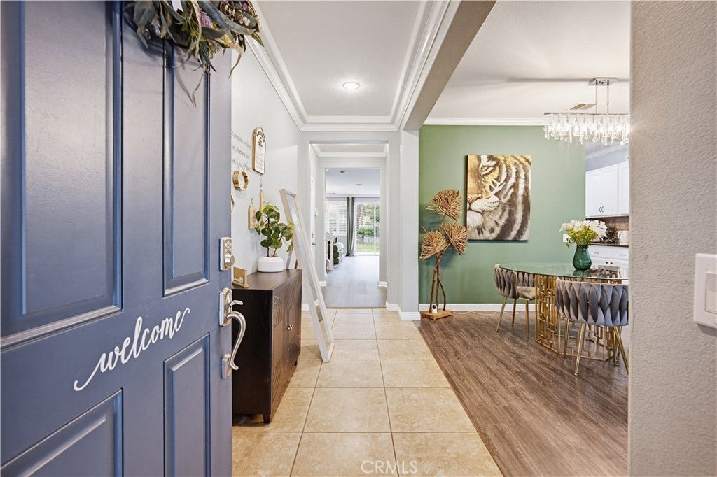 A beautiful backyard sets the tone for this exceptional 3,100+ sq ft home in Corona. Step into a serene outdoor space with a charming fruit-tree garden atmosphere—perfect for relaxing, entertaining, and enjoying special moments with family and friends. A rare bonus: seasonal fireworks views during New Year’s and Independence Day, all from the comfort of your own backyard. Inside, the home showcases unique character and artistic touches. Thoughtfully curated design elements, including a custom accent wall, create a refined, model-home feel that stands out from typical homes. Every detail reflects creativity, style, and care. The spacious floor plan features 5 bedrooms, 4.5 bathrooms, and a large loft, offering flexibility for large households, multigenerational living, home offices, or creative spaces. A brand-new kitchen and family room floor adds a fresh and modern touch. With over 3,100 sq ft of living space, the home feels open, comfortable, and functional for everyday living. Located within a community that offers excellent HOA amenities, residents enjoy well-maintained common areas and lifestyle features that enhance both daily living and long-term value. The home is also situated in a highly regarded school district, making it an attractive option for buyers planning ahead. A rare combination of beautiful outdoor living, artistic design, generous space, and community amenities—all offered at an outstanding value. Schedule your private showing today and experience this unique home in person.