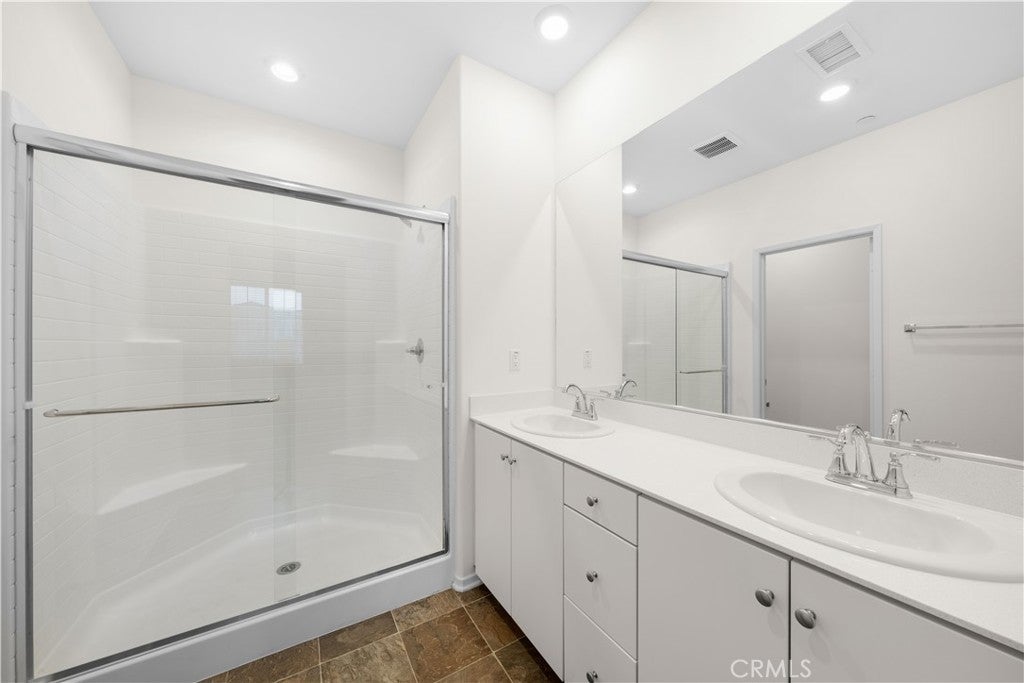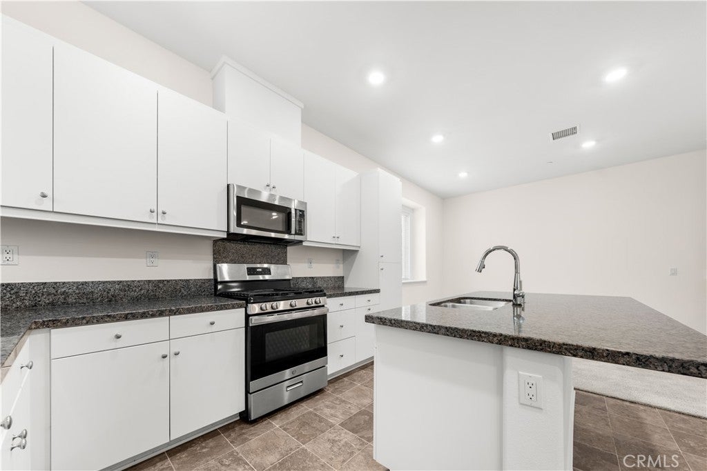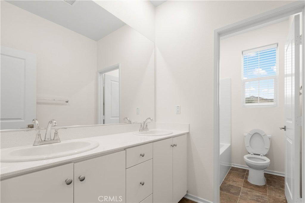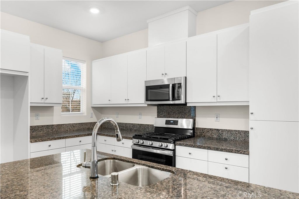 Discover this impeccably updated 4-bedroom, 3-full-bath modern townhouse, freshly painted throughout and professionally cleaned top to bottom—truly turnkey! The open-concept first floor features a sleek gourmet kitchen with modern stainless steel appliances (stove, microwave, range hood, dishwasher) flowing seamlessly into a spacious living area. A generous downstairs bedroom with full bath provides flexibility for guests, in-laws, or home office, plus a large laundry room leading to the attached 2-car garage. Upstairs, the luxurious master suite includes dual-sink vanity, walk-in closet, and serene views. Two additional well-sized bedrooms share another dual-sink bathroom for convenience. This low-maintenance end-unit offers solar power for energy savings, a spacious concrete front yard ideal for relaxation or entertaining, superior natural light, privacy, and prime positioning near the community entrance with unobstructed views. The resort-style community includes a sparkling pool, tennis courts, gym, BBQ areas, parks, playgrounds, and more. Convenient location: minutes to I-15 for commuting, Victoria Gardens shopping and dining, top restaurants, and supermarkets.