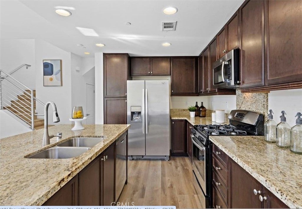 Welcome to this beautiful high-end townhouse located conveniently in the center of Central Park West Community. This luxurious home features two master bedroom homes and 2.5 baths. Open floor with high ceiling, extremely well designed. Corner lot with plenty of natural light. Private front door leads you to the attached tandem two car-garage and staircase to the third and fourth floor. On the third floor, there is a two-story ceiling with an open kitchen, living room and dining area, and one master bedroom suite. Gourmet kitchen boasts stainless steel appliances, a big island, and plenty of cabinetry. On the fourth floor, an upstairs loft for the office or living area guides you to the outdoor spacious deck and laundry room. Indulge yourself into a large master bedroom. Nice sized master bathroom features dual vanity, and spacious walk-in closet. Brand new wood floor throughout. Mins away to the business center, shopping centers, clubhouse and recreation center with pools and parks. I-405 and I-55 closed by.