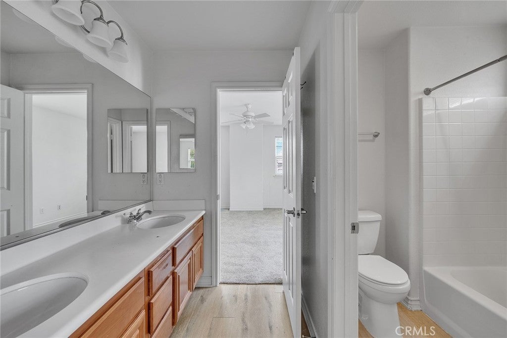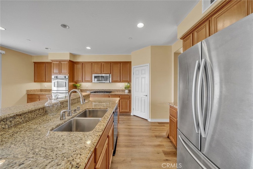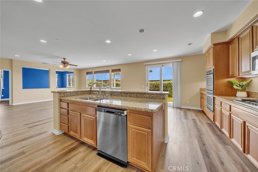 Welcome to this beautifully maintained 4-bedroom, 3-bathroom home located in the highly desirable North Fontana community of Shady Trails. This spacious two-story residence sits on a 10,076 Sqft lot, offering an open and inviting floor plan with abundant natural light throughout. The main level features a generous living area, a modern kitchen with stainless steel appliances, granite countertops, ample cabinetry, and a large center island perfect for meal prep or casual dining. A full bathroom is conveniently located downstairs for guests, while all four bedrooms are thoughtfully situated on the second floor to provide optimal privacy. Upstairs, you’ll find a spacious primary suite with a walk-in closet and an en-suite bathroom featuring dual sinks, a soaking tub, and a separate shower. Three additional bedrooms, a full hallway bathroom, and a convenient laundry room complete the second floor. Additional highlights include a spacious 3-car garage, providing ample parking and convenience. Situated on an expansive lot, this home offers a large backyard with plenty of open space—perfect for outdoor entertaining, gardening, recreation, or simply relaxing in a private setting. Residents of the gated Shady Trails community enjoy access to resort-style amenities including a clubhouse, fitness center, pools, spa, sports courts, playgrounds, and walking paths. Conveniently located near shopping centers, parks, top-rated schools, and major freeways, this home offers both comfort and convenience. Don’t miss your chance to own this stunning home in one of Fontana’s most sought-after neighborhoods.