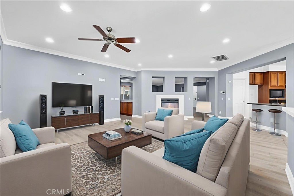 Stunning Pool Home in Prestigious Silverhawk Estates. Welcome to this beautiful 4-bedroom 2.5-bath home located in the sought-after Silverhawk Estates community of Corona. Updated with newer flooring and remodeled fixtures, this residence is move-in ready. Upon entering, you are greeted by high ceilings and a spacious formal living and dining area centered around a cozy fireplace. The floor plan flows effortlessly into an open family room and breakfast nook. The adjacent kitchen is a chef’s delight, featuring granite countertops, a walk-in pantry, a breakfast bar, and ample cabinet space. The main level also offers a versatile BONUS ROOM —perfect for use as a home office, a library, a den, a playroom or a 5th bedroom—and a convenient powder room for guests. Upstairs, you will find a dedicated laundry room and three generously sized bedrooms. The expansive Primary Suite is a true retreat, boasting two large walk-in closets and a luxurious en-suite bathroom with a private water closet, soaking tub, and separate walk-in shower. Step outside to your own private oasis featuring a sparkling swimming pool and spa. The property also includes a spacious side yard with endless potential, a hardscape backyard designed for relaxation and minimal upkeep, and an attached direct-access 2-car garage. Enjoy the benefits of a low HOA and an excellent location close to shopping, dining, and the 15/91 freeways.