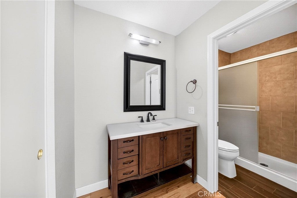 A beautiful and cozy updated Malvern Creek community two-level condo in Fullerton. It is an End-Unit with 2 car attached garage and plenty of guest parking. Hardwood flooring throughout the house. The 2nd floor has a large Master bedroom with a ceiling fan & light, a walk-in closet, and a full bath.2nd bedroom has ceiling light+ full bath. Downstairs has a fireplace in the living room, a 1/2 bath, a patio outside of the living room, and a neat and updated clean kitchen, with extra lights on the ceiling. Laundry hookups in the garage. Excellent school district, with Fisher Elementary and Sunny Hills High. Very conveniently located close to supermarkets, shopping centers, dining options, parks, and more. Don't miss this opportunity to make this beautiful home yours!!!