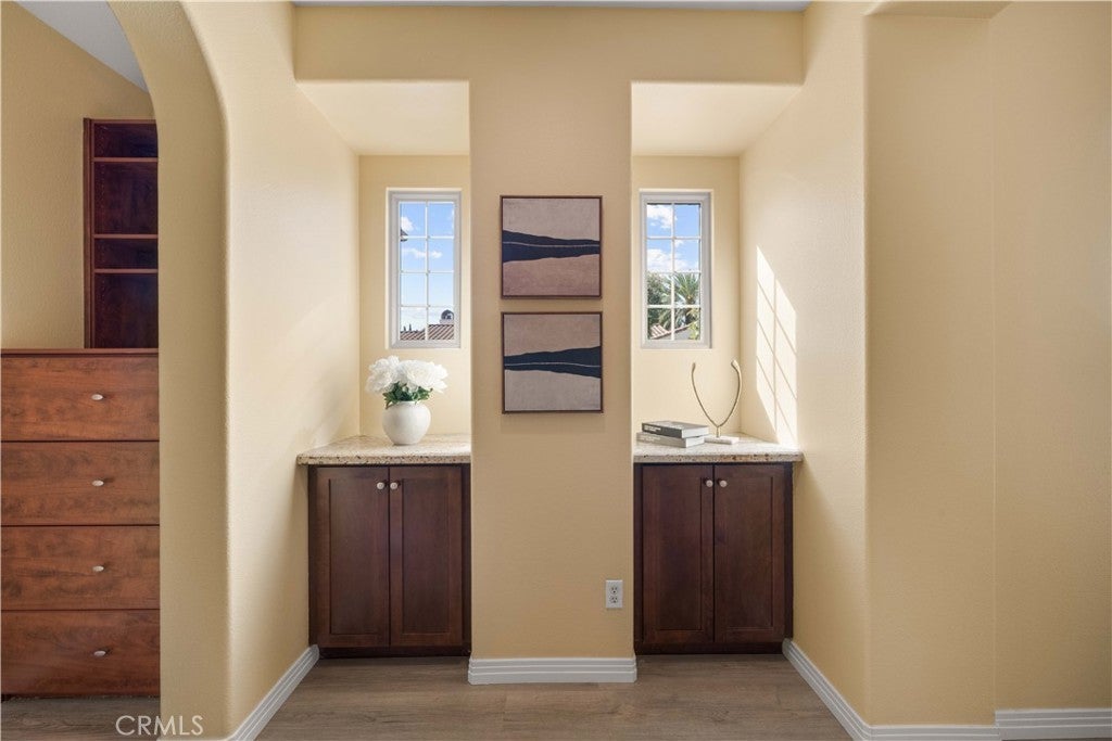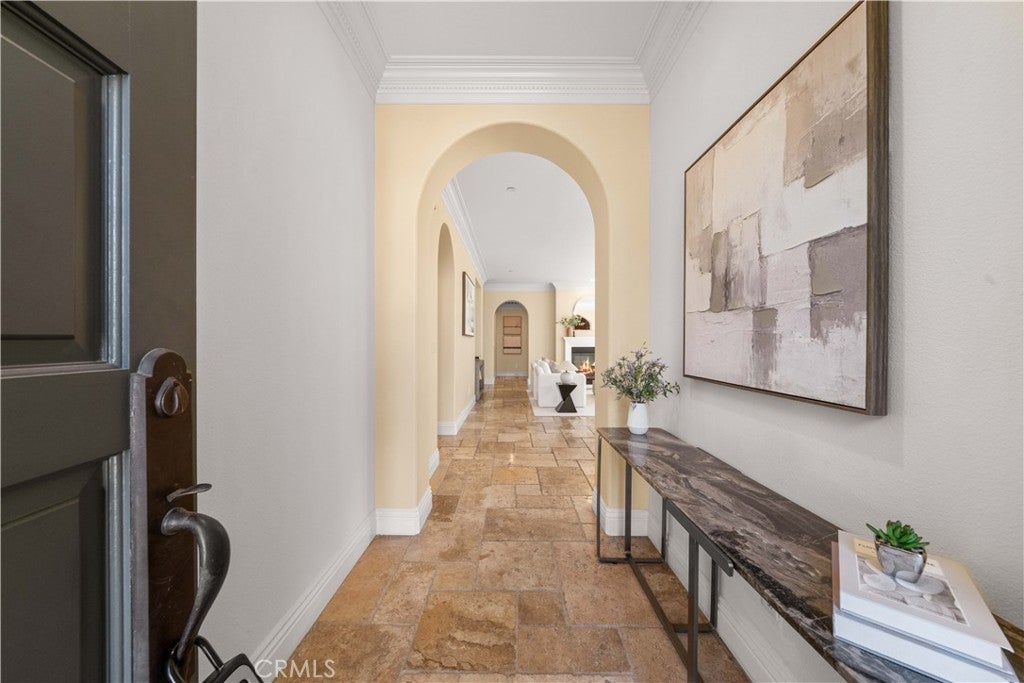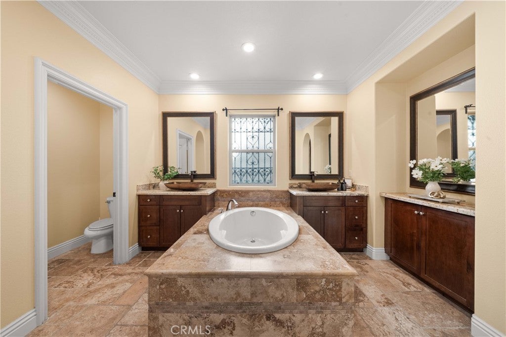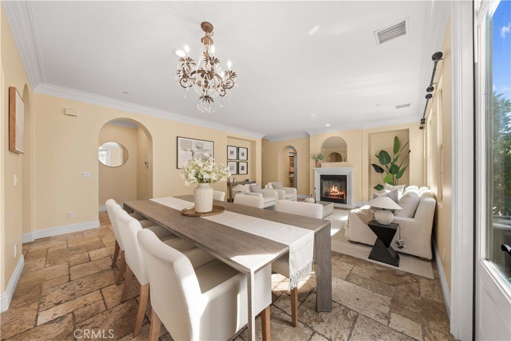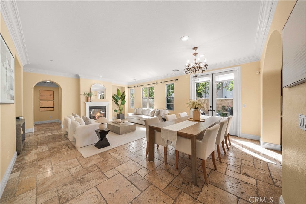 Rarely available Woodbury Treo Plan 2X featuring a master suite on each level and an exceptional 3-bedroom ensuite configuration where every room boasts its own private bathroom. This open and spacious layout feels like a single-family residence and is situated on one of the community's largest elevated corner lots at the end of a quiet cul-de-sac. Meticulously upgraded throughout, the home showcases beautiful stone floors on the main level and high-quality wood flooring throughout the entire second level—offering a modern, carpet-free environment. The gourmet kitchen features premium stainless steel appliances and extensive stonework, overlooking a living area anchored by a grand fireplace. Custom built-ins in the closets and garage, luxurious multi-layered crown molding, designer paint, and upgraded chandeliers highlight the interior's sophistication. The oversized, professionally landscaped yard is a true sanctuary with flagstone flooring, water features, seat walls, and a wide variety of established fruit trees. Enjoy resort-style living with walking access to 14 parks, 7 pools, tennis courts, and the Jeffrey Open Space Trails, while being minutes from world-class shopping and top-rated Woodbury Elementary and Jeffrey Trail Middle School.