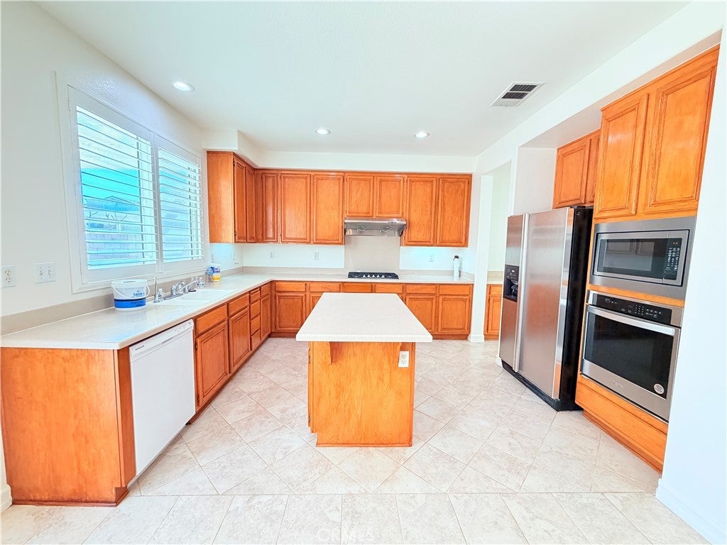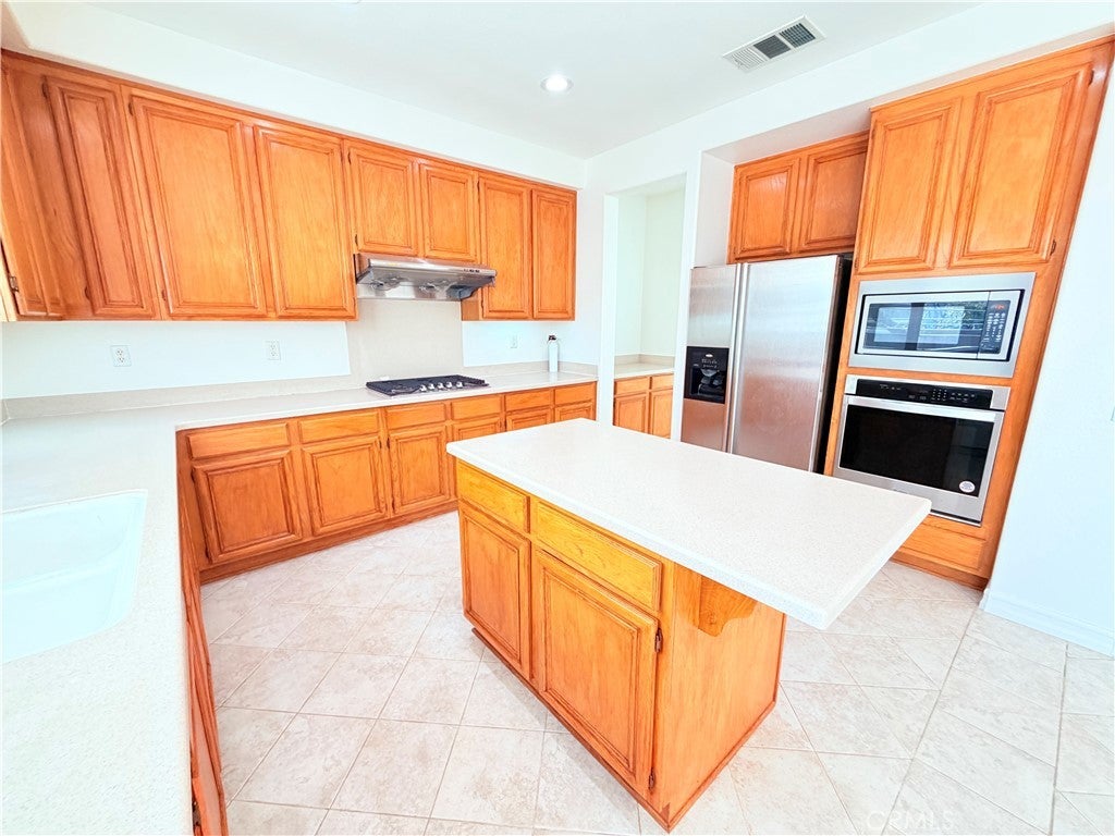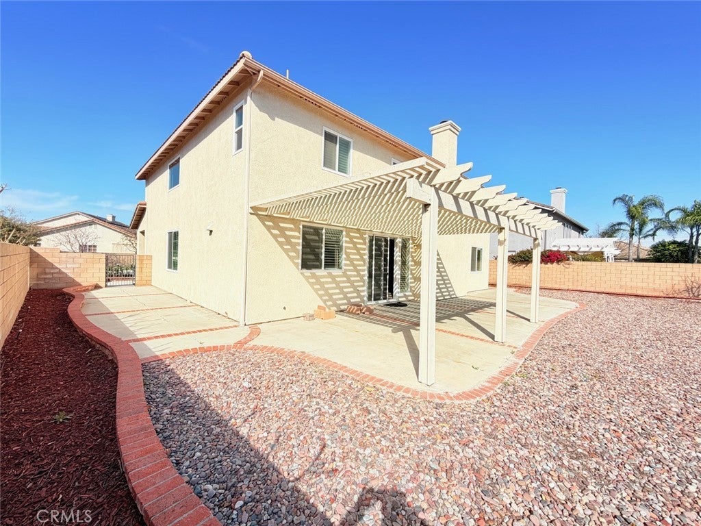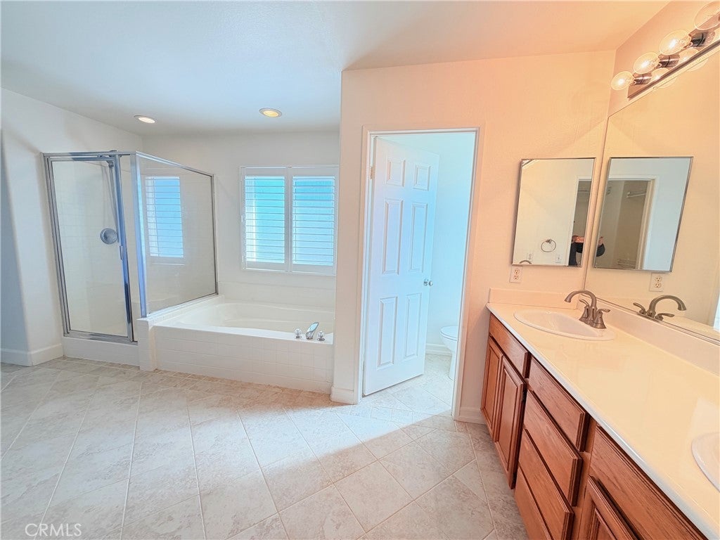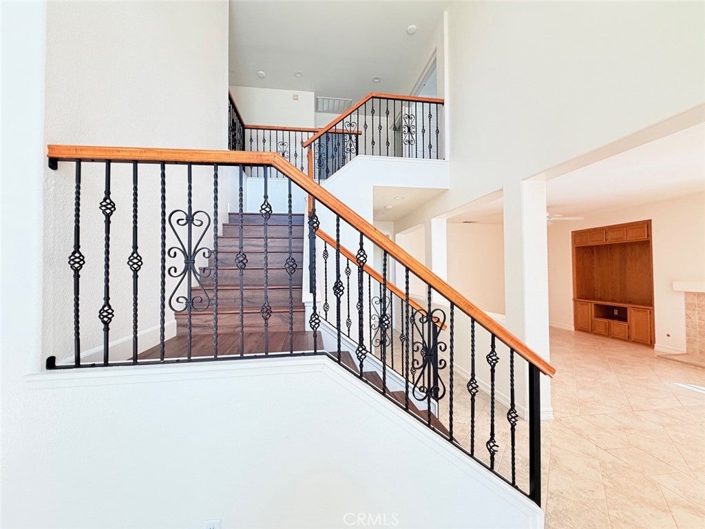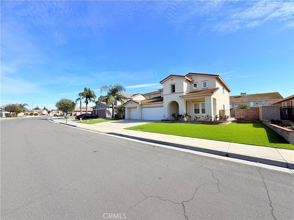 Welcome to this fully upgraded, move-in ready two-story home. It features 4 bedrooms and 3 bathrooms, Tiles floor on the main floor. Newer double-pane windows throughout the entire house with shutters, newer dual A/C units, a three-car garage with driveways, an artificial turf front yard with a rose garden, two side gates, and a drought-resistant pebble landscaping backyard with fruit trees. The home has a bright open floor layout with a formal living and dining space, high ceilings, and a patio door connecting to the backyard. The family room has a ceiling fan and a cozy fireplace. The spacious kitchen also features a large island, corian countertops, generous cabinets, a fridge, built-in stainless-steel microwave and oven, and a separate pantry for storage. It has a newer gas stove-top with Pacair range hood. The main floor has a generous-sized bedroom, a walk-in closet, and a full bath. It is perfect for guests and in-laws. An upgraded iron-wrought staircase leads you to the second level. It features the master bedroom with a tub and a separate shower, dual vanities, his and her walk-in closets. A Jack and Jill bathroom connects the second and third bedrooms. Vinyl floor planks throughout the upper bedrooms, with tiles throughout the high traffic area. A separate laundry room is also upstairs for convenience. Located in the heart of Eastvale, this home is close to Costco, 99 Ranch Market, Home Depot, restaurants, and is easily accessible from 15, 60, and 91 freeways.