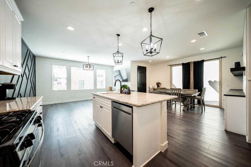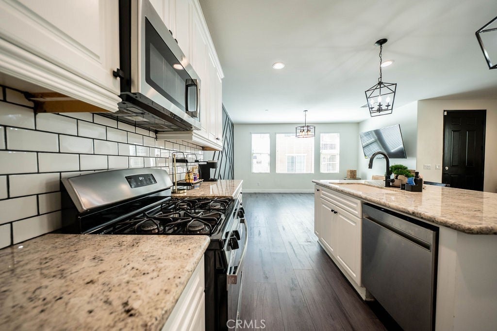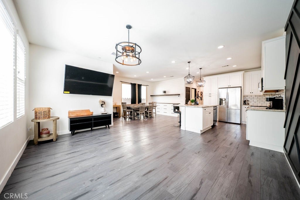 Welcome to 1928 Ray Abril Jr Ln, a beautifully upgraded 2021-built home located in the desirable Wildrose Community of Colton. This 4 bedroom, 3 bathroom home offers approximately 1,949 square feet of thoughtfully designed living space with a functional and versatile floor plan. The open-concept main level features luxury vinyl plank flooring, recessed lighting, custom accent walls, and designer light fixtures throughout. The spacious Great Room seamlessly connects the living, dining, and kitchen areas, creating an ideal setting for everyday living and entertaining. The kitchen showcases white cabinetry, beautiful countertops, subway tile backsplash, stainless steel appliances, and a large center island with bar seating. The dining area includes a built-in credenza. A highly desirable downstairs bedroom and full bathroom with walk-in shower offer flexibility for guests or multi-generational living. Upstairs features a versatile loft space, perfect for a home office, media room, or play area. The primary suite includes a walk-in closet with built-in organizers and an ensuite bathroom with dual sink vanity, quartz counters, soaking tub and separate shower. Two additional bedrooms, a full hall bathroom, and an upstairs laundry room with additional storage complete the second level. Additional highlights include an attached 2-car garage, tankless water heater, and a low-maintenance concrete backyard ready for outdoor enjoyment. The Wildrose Community offers a low HOA with amenities including a swimming pool, BBQ area, playground, greenbelts and dog park. Conveniently located near the 210 and 10 freeways, shopping, dining, and medical facilities including Arrowhead Regional Medical Center, Loma Linda University Medical Center and Kaiser Fontana. Modern construction, flexible layout, and a prime commuter-friendly location make this home a must-see.