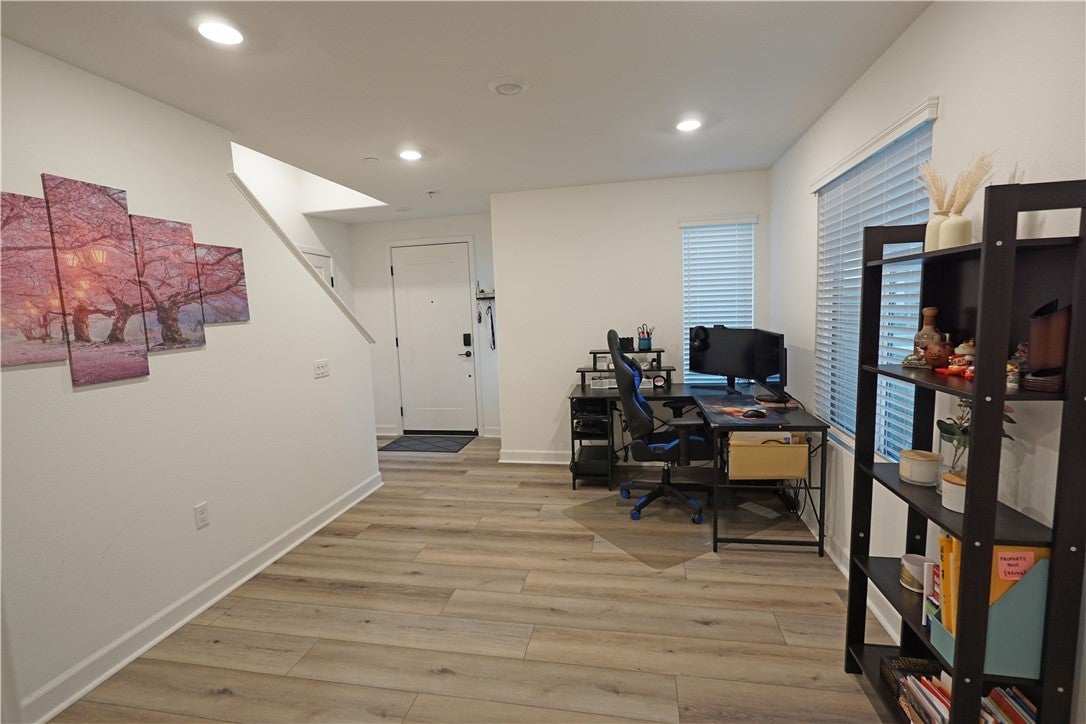 ALMOST BRAND NEW! Welcome to refined contemporary living in one of South San Diego’s most exciting new communities – Willow at Epoca. Built in 2023, this impeccably designed four-bedroom residence with versatile first-level executive office or flex living space blends sophistication with functionality. Vinyl plank flooring flows seamlessly throughout the three levels, complemented by a stunning open-concept kitchen anchors the home, showcasing quartz countertops and tile backsplash, an expansive island, upgraded shaker cabinetry, and premium stainless appliances. All Bathrooms showcase stylish sinks, sleek bathtubs and contemporary showers. The spacious Living, Dining and Kitchen areas create an open and airy Great Room that extends to the private Balcony - offering ample space for barbecuing, morning coffee, or unwinding in the fresh air. Natural light flows into the living spaces, creating an inviting atmosphere ideal for entertaining or everyday comfort. The serene primary suite offers a walk-in closet and spa-inspired bath with dual vanities and designer finishes, along with three spacious, thoughtfully designed layout bedrooms and bathrooms. Tankless water heater, solar power system and thoughtful upgrades elevate efficiency and luxury!! Beyond the home, Epoca offers a lifestyle – private resident’s club, a growing collection of parks, greenbelts, sports courts, and a planned private club with pool, spa, and fitness center This is more than a home. MODERN ELEGANCE. VIBRANT COMMUNITY. EFFORTLESS LIVING. - a lifestyle minutes to freeways, shopping, dining, and beaches. VA & FHA approved community!!!