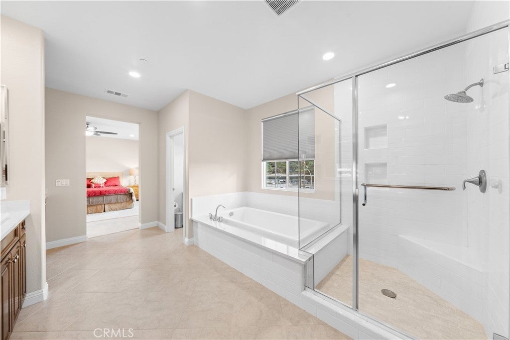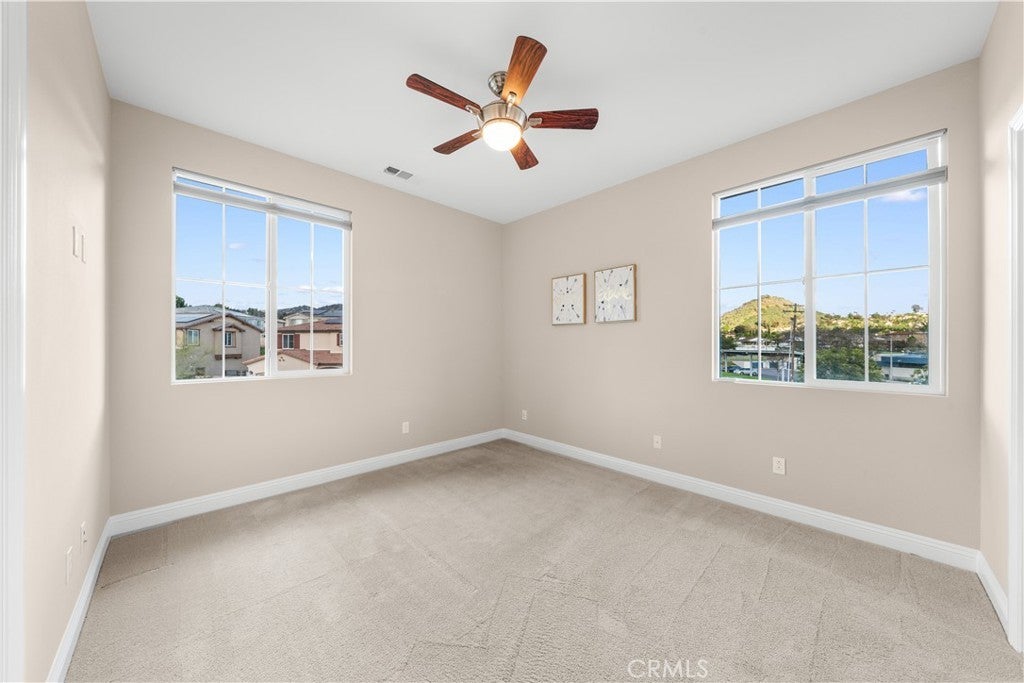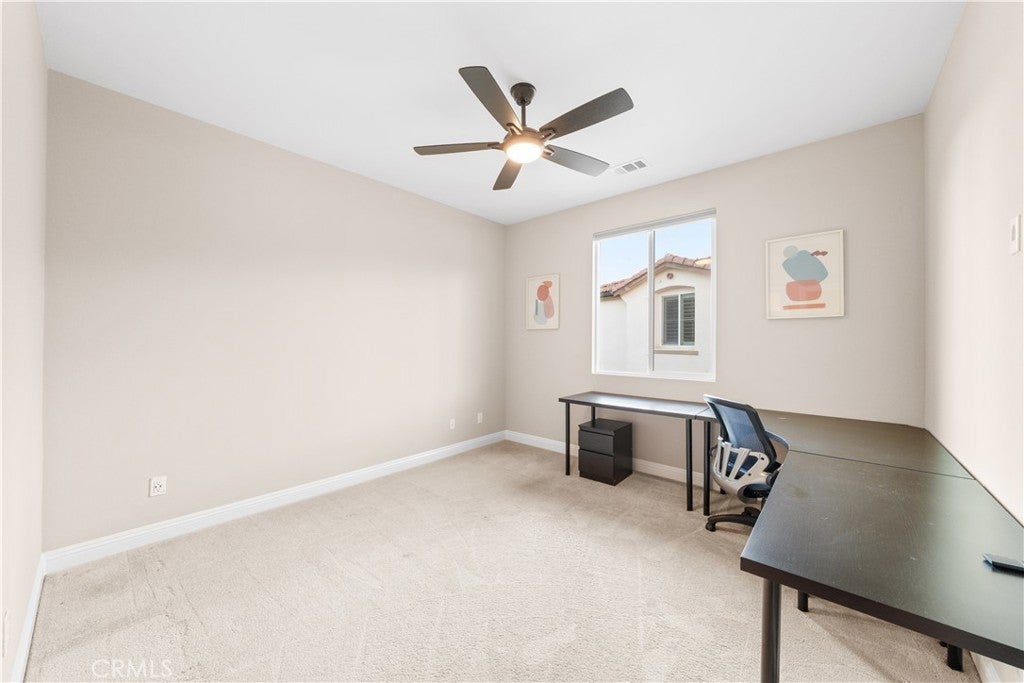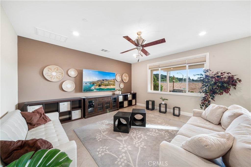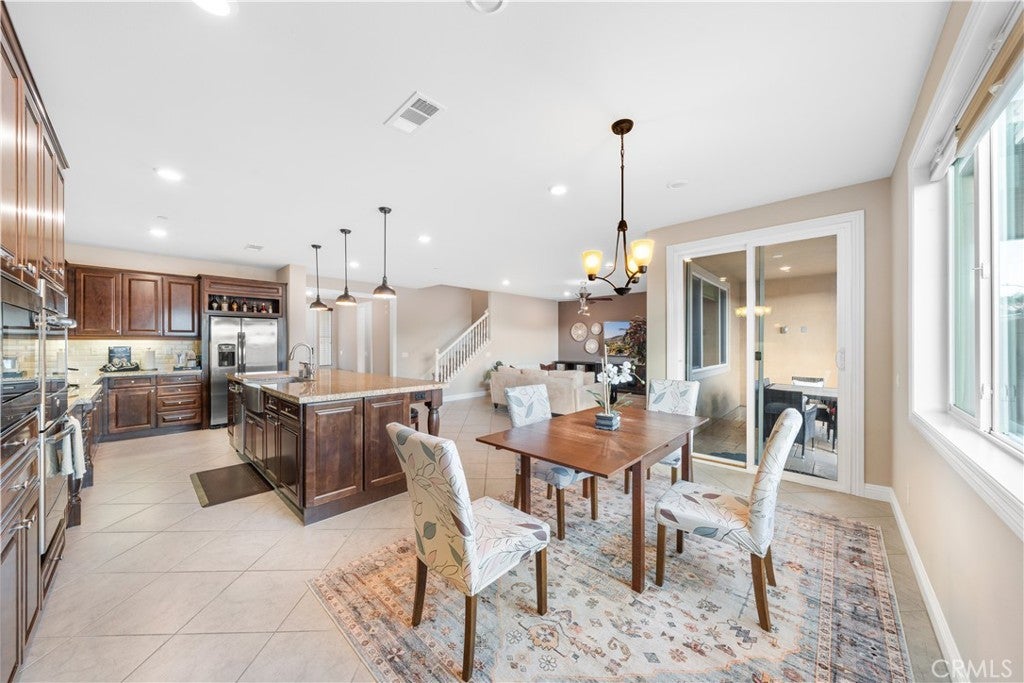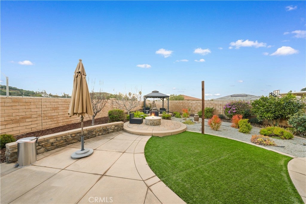 Welcome to 2023 Meadow Vista Place, a beautifully maintained 2016-built home tucked at the end of a quiet cul-de-sac in North Escondido, offering privacy and a peaceful neighborhood setting. Inside, the bright and spacious living room features soaring ceilings that create an open and inviting atmosphere. A beautifully designed kitchen anchors the main living areas, blending comfort and functionality for both everyday living and effortless entertaining. The rare tandem garage provides three parking spaces with dual access — including direct entry into the pantry and an additional hallway entrance for daily convenience. This home is equipped with solar, including a builder-installed system that has been fully paid off and an additional leased system with a low monthly cost that is transferable to the new owner. Enjoy enhanced comfort with a whole house fan. The beautifully landscaped backyard is designed for relaxation and gatherings, featuring a California sunroom, patio, outdoor fireplace perfect for s’mores nights, gazebo, outdoor kitchen counter, BBQ area, a charming fountain, and many fruit trees. The expansive side yard offers exceptional versatility, perfect for recreation such as 3-on-3 basketball or a ping pong setup. The flexible floor plan includes a bedroom on the main level, ideal for guests or multigenerational living. Upstairs features a versatile den with built-in desks, perfect for a home office or study space, along with a dedicated laundry room complete with sink, built-in cabinets, and shelving for added storage and convenience. The spacious primary suite offers a large walk-in closet and a well-appointed bath with double sinks, soaking tub, and separate shower. A secondary ensuite and two additional bedrooms — all with walk-in closets — provide ample space for family or work-from-home needs. Located within 10 minutes from the highly regarded Escondido Charter High School & Classical Academy High School, ranked among the top charter high schools in California, this home is positioned in a community where education is highly valued and families prioritize access to strong academic opportunities. No mello-roos.