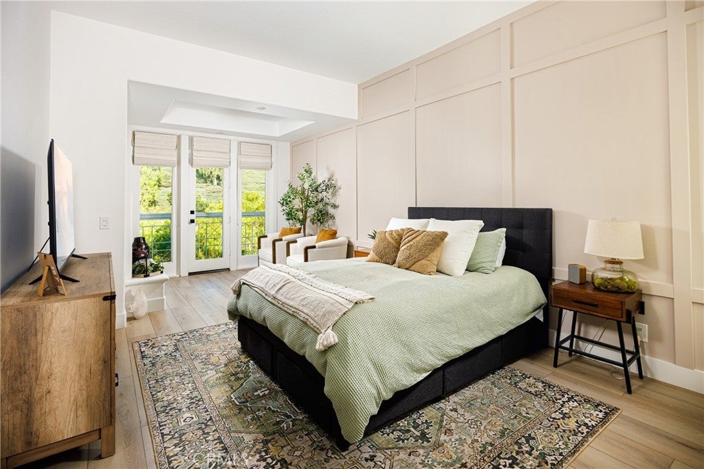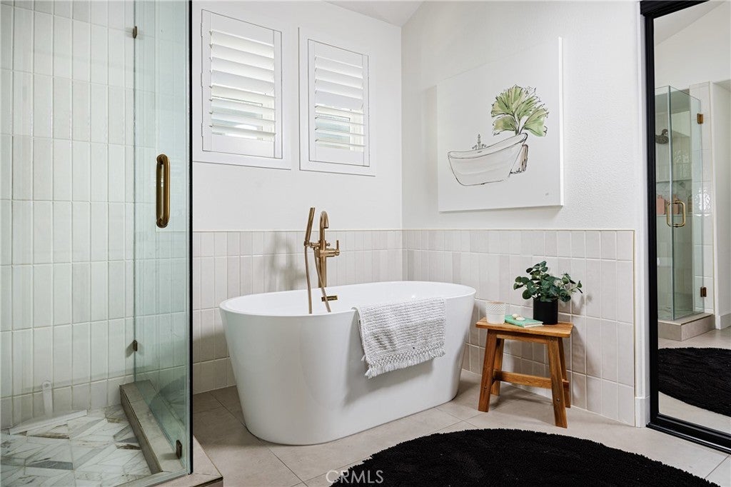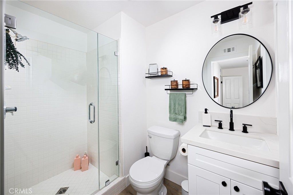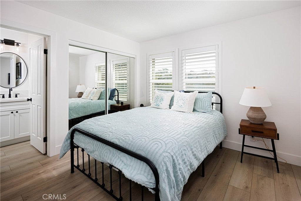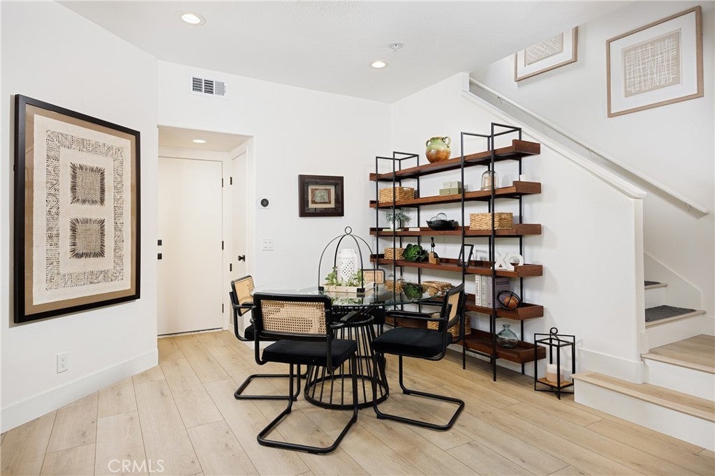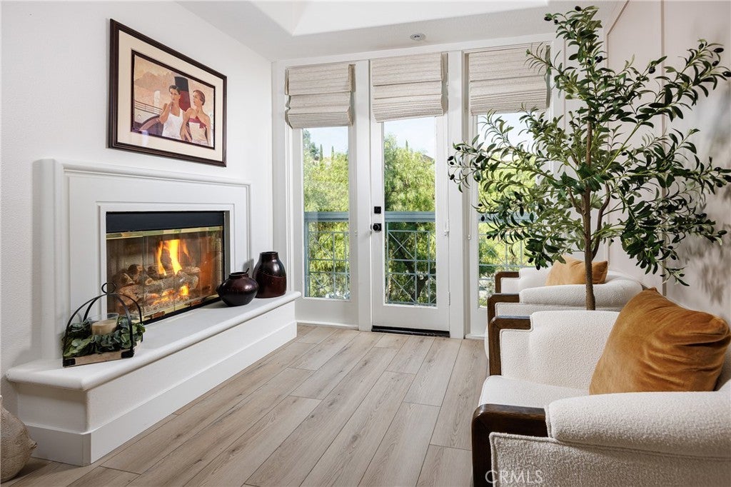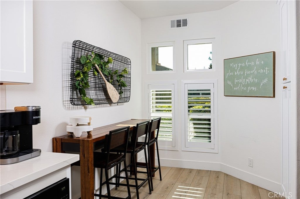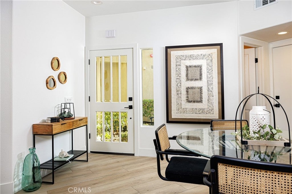 Elegant two-story Mediterranean-style townhome located in the desirable gated community of Cameray Pointe in Laguna Niguel. This extensively remodeled 1,643 sq ft residence built in 1991 blends modern sophistication with coastal charm. Upon entry you’re welcomed by oak-style luxury vinyl plank flooring leading to a bright and spacious dining area and convenient main-level guest bath. The inviting main living area showcases soaring 12-foot vaulted ceilings, an idyllic gas fireplace with tile surround, and abundant natural light. The thoughtfully updated kitchen features crisp white cabinetry, quartz countertops, farmhouse-style sink, and breakfast nook. A full LG stainless steel appliance package—including 4-burner gas range, built-in microwave, dishwasher, and refrigerator—completes the perfect culinary space. Upstairs, the expansive owner’s suite offers a tranquil retreat with a cozy sitting area, gas fireplace, and Juliet balcony. The spa-inspired bathroom boasts a freestanding soaking tub, walk-in shower with designer tile, dual vanities, and generous closet space. The secondary bedroom includes its own en-suite bath with a stylish walk-in shower, ideal for guests or extended stays. Enjoy relaxed coastal living outdoors on the private patio with solar lighting and BBQ space—perfect for entertaining on warm California evenings. Additional highlights include full-size washer and dryer, sprinkler system, central A/C, gas-forced air furnace, two-car garage, and access to community amenities including pool and guest parking. With its blend of luxury, comfort, and gated security—all just minutes from coastal trails, boutique shopping, and top-rated schools—this property embodies the best of Southern California living.