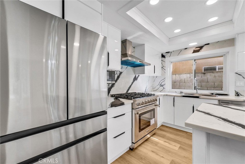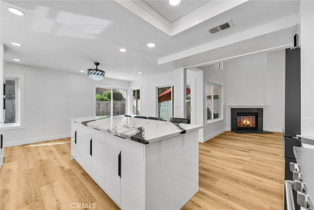 Marvelous home with 4 bedrooms and 2 1/2 baths in the desirable Chino Hills community. This stunning home includes a plethora of upgrades including New Flooring, Freshly Painted Interior & Exterior, New Light Fixtures throughout the home, and Remodeled Kitchen and Bathrooms. When you enter the home, you’re greeted with High Ceilings in the spacious Living Room accompanied by a cozy tiled fireplace. To the left you’ll find a Formal Dining Room. As you walk further into the home, you will find a Bright and Open Kitchen. It features new Modern Cabinets, and an Opulent Quartz Countertop & Backsplash that harmonize perfectly with the Brand-New Luxury Stainless Steel Appliances. All brand new appliances include 6-Burner Range, Range Hood, Dishwasher, Refrigerator, and Automatic Faucet. The huge Quartz Kitchen Island provides ample seating for the whole family. This kitchen was built to maximize cabinet and countertop space. Downstairs, you’ll also find a Remodeled Powder Room with new luxuriously tiled walls, vanity, mirror and light fixtures. As you walk upstairs, you’ll find 4 Spacious Bedrooms and a Hallway Bathroom. Hallway Bathroom spotlight new tiled walls, shower head and glass sliding door. Primary Suite includes tons of Closet space. Upgraded Primary Suite Bathroom includes new vanity, marble-like Tiled walls, shower heads, and Glass sliding door. Hard-scaped Backyard designed for relaxation and minimal upkeep. Additional upgrades include redone Window frames for a modern look. Attached and Direct-access 2-car Garage. NO HOA! Easy access to 71 FWY. Very close distance to Local Schools, Parks, Shopping Centers, and Restaurants.