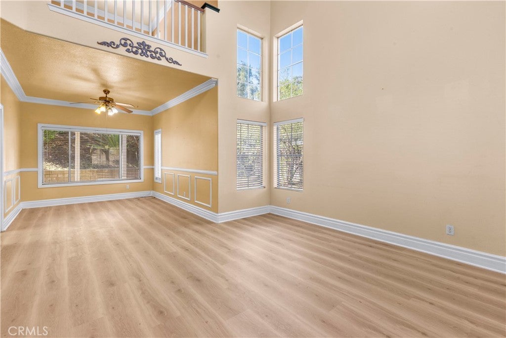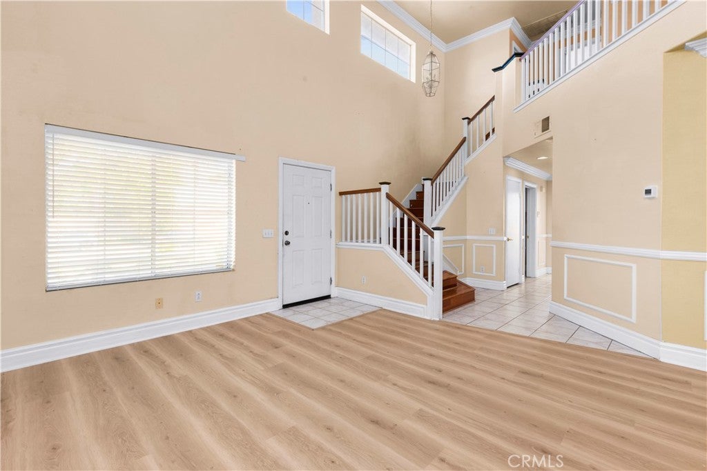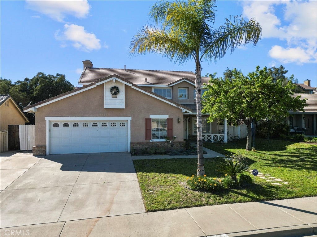 Welcome to this beautifully designed 4 bedroom, 3 bathroom home in the heart of Lake Elsinore. With a rare and versatile floor plan, you'll find 2 bedrooms and a full bath conveniently located downstairs, perfect for guests, multigenerational living, or a home office setup. The living room features a cozy gas fireplace and flows seamlessly into the main living area, creating a warm and functional space for everyday living and entertaining. Upstairs offers 2 additional bedrooms and 2 full baths, including a spacious primary suite complete with a private balcony. The primary bathroom features a walk-in-closet. Step outside to a covered patio and low-maintenance backyard designed for relaxation without upkeep.