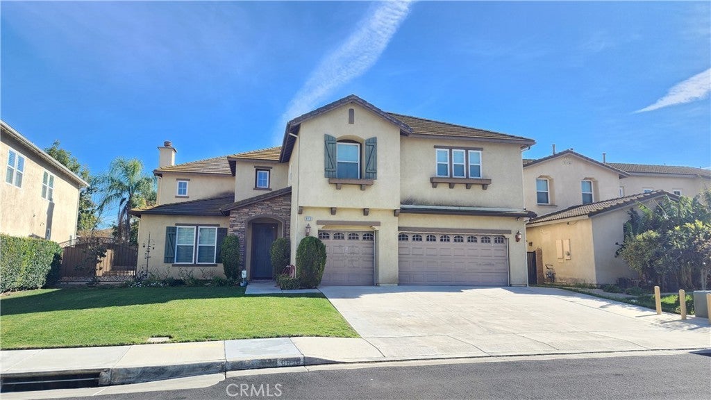 Beautiful 2 story home in desirable and quiet neighborhood. Separate Formal living and Large Dining room with cathedral ceiling. Family room with Hardwood and carpet inlay. Upgraded concrete fireplace. Kitchen boasts of upgraded cabinetry and granite counter tops and custom tile backsplash. Eating area with large sliding glass door leading to custom salt water pool and spa. Stainless Steel double oven, cook top, microwave &Dishwasher . Walk in pantry with lots of storage. 2 Bedrooms including 1 1/2 baths downstairs. Laundry room with sink and cabinets and door leading to outdoor and pool. The staircase has upgraded wood railings. Upon reaching the second floor there is an extra large bonus room with recessed lighting. 3 secondary bedrooms upstairs each with their own bathroom! Master bedroom is large with area for seating. Master bathroom's shower and separate bathtub. Custom tile inlay in master bath. 2 separate sink and cabinet areas. Large walk in closet. Shutters throughout home. CMU walls all around rear yard including planter. This is a beautiful property with a cooling pool. Minutes away to lots of shopping and restaurants.