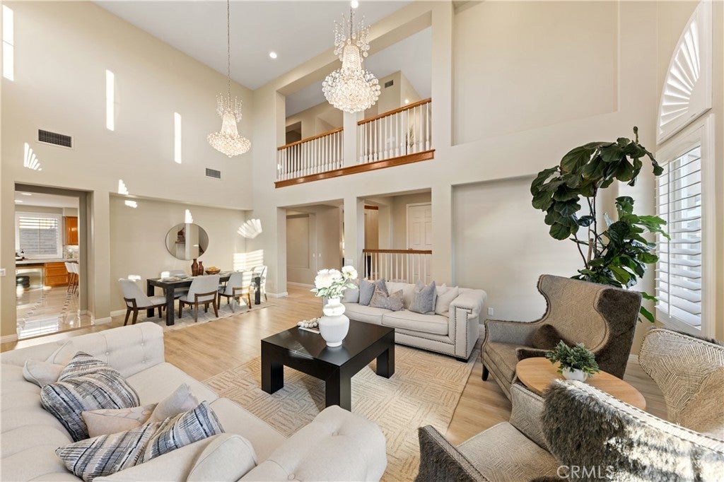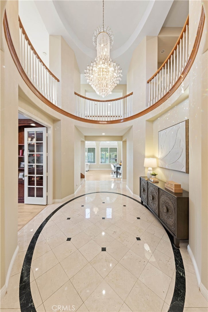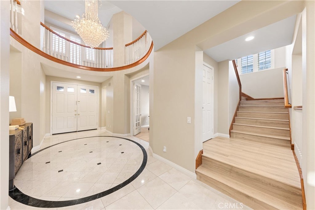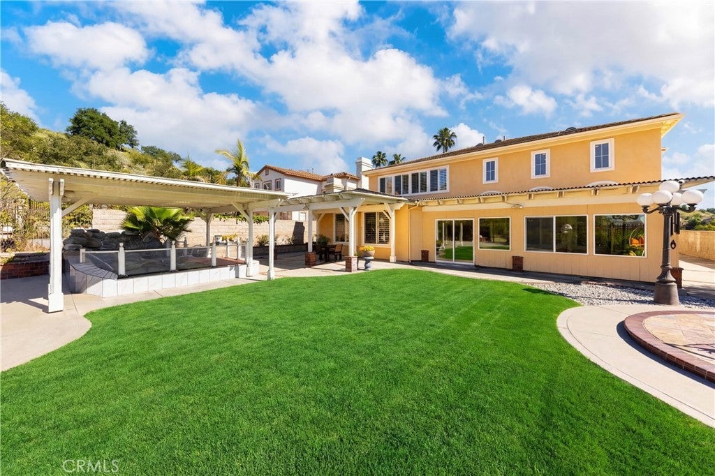 Nestled in one of Diamond Bar’s most beloved gated community – Diamond Crest, served by award-winning Walnut Valley Unified School District. this south-facing home offers 5 bedrooms, 5 bathrooms, plus a dedicated office and a serene Japanese-style tearoom / tatami room. Boasting 4,425 sqft of living space on an expansive lot over 10,000 sqft. This home combines functionality, elegance, and lifestyle. The grand entry showcases soaring nearly 20-foot ceilings and a stunning Swarovski chandelier, creating an impressive first impression. The thoughtfully designed floor plan includes a main-level ensuite bedroom, ideal for guests or multi-generational living. The gourmet kitchen features a waterfall-edge Taj Mahal quartzite countertop with flowing veining, built-in refrigerator, double ovens, and premium Bosch appliances, complemented by a fully equipped wok kitchen with high BTU Burner. Upgrades include high-end flooring throughout, Plantation shutters, and a water softener system. The spacious three-car garage provides ample parking and storage. Pravite backyard is designed for both relaxation and enjoyment, featuring a tranquil koi pond with patio, abundant fruit trees, and panoramic city & mountain views. Conveniently located within walking distance to top-rated middle and high schools, If you’re seeking elegance, energy, and auspicious design in your next home—Come live the lifestyle you deserve.
