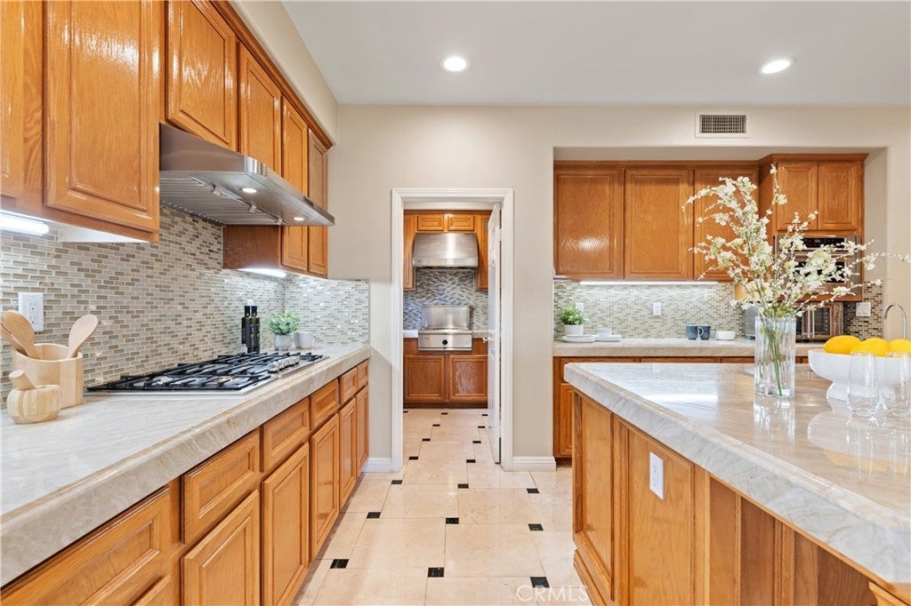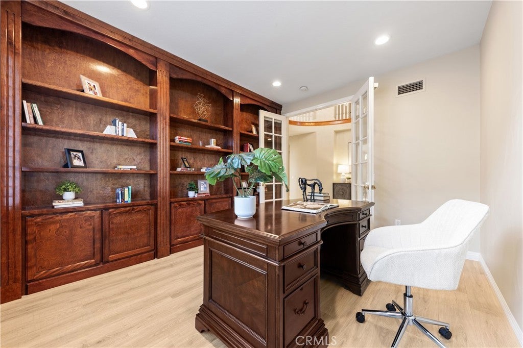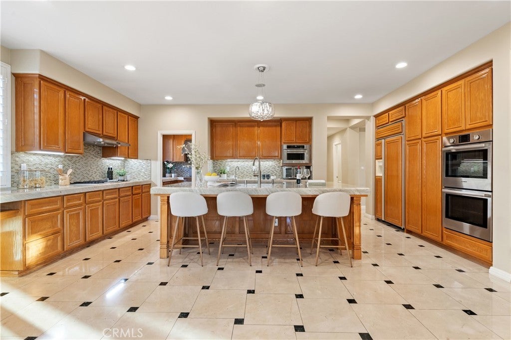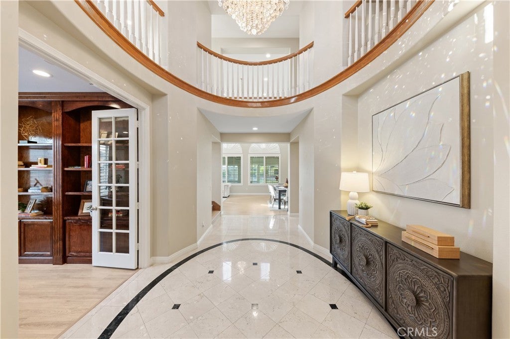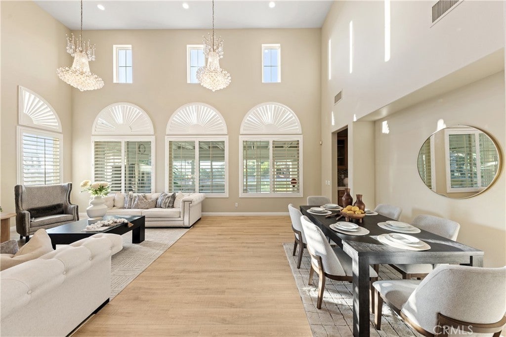 Nestled in one of Diamond Bar’s most beloved gated community – Diamond Crest, served by award-winning Walnut Valley Unified School District. this south-facing home offers 5 bedrooms, 5 bathrooms, plus a dedicated office and a serene Japanese-style tearoom / tatami room. Boasting 4,425 sqft of living space on an expansive lot over 10,000 sqft. This home combines functionality, elegance, and lifestyle. The grand entry showcases soaring nearly 20-foot ceilings and a stunning Swarovski chandelier, creating an impressive first impression. The thoughtfully designed floor plan includes a main-level ensuite bedroom, ideal for guests or multi-generational living. The gourmet kitchen features a waterfall-edge Taj Mahal quartzite countertop with flowing veining, built-in refrigerator, double ovens, and premium Bosch appliances, complemented by a fully equipped wok kitchen with high BTU Burner. Upgrades include high-end flooring throughout, Plantation shutters, and a water softener system. The spacious three-car garage provides ample parking and storage. Pravite backyard is designed for both relaxation and enjoyment, featuring a tranquil koi pond with patio, abundant fruit trees, and panoramic city & mountain views. Conveniently located within walking distance to top-rated middle and high schools, If you’re seeking elegance, energy, and auspicious design in your next home—Come live the lifestyle you deserve.