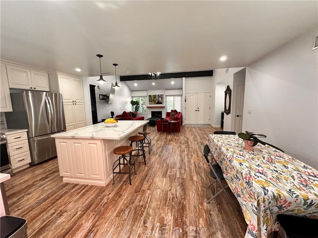 Experience elevated California living in this exquisitely upgraded 3-bedroom, 2-bath home with FINISHED garage for first class comfort. Home has soaring 13-foot ceilings and an expansive open-concept design create a dramatic yet inviting atmosphere. The chef-inspired kitchen is outfitted with premium LG appliances and a substantial center island with ample storage, while elegant double doors open seamlessly to a private backyard, perfect for refined indoor-outdoor entertaining. Inside, oversized dual-pane energy-efficient windows flood the home with natural light, complementing sleek, high-performance flooring that offers both sophistication and durability throughout. Major 2022 upgrades—including electrical, plumbing, roof, a Sunrun Solar Roof, two Tesla Powerwalls, and a Tesla charger—provide modern infrastructure beneath timeless design. The home is further enhanced by a fully integrated solar system for energy independence and long-term savings, along with premium features such as an A.O. Smith whole-home water softening system, Noritz tankless water heater, Goodman high-efficiency A/C, Ring security system, automatic irrigation, and custom wood shutters throughout. The private owner’s retreat offers an expansive primary suite with a large closet, a spa-inspired travertine shower, and direct backyard access for quiet morning or evening escapes. Completing the property is a fully finished, insulated, and air-conditioned garage with private attic storage, a built-in weight training system, and a generously sized interior laundry room, making this home as functional as it is luxurious.