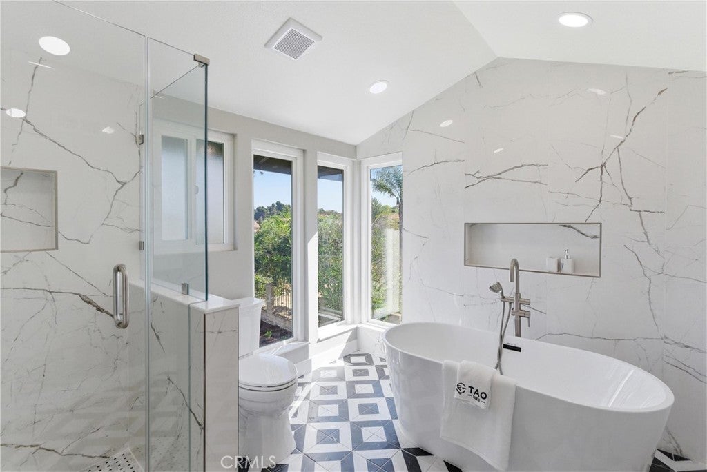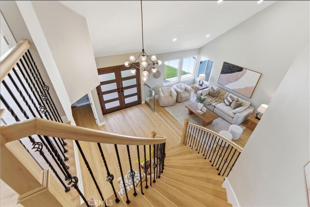 Welcome to this beautifully fully renovated single-family home in the highly desirable South Diamond Bar neighborhood. This spacious residence offers 4 bedrooms and 3 full bathrooms, including a convenient downstairs bedroom and full bath, ideal for guests, multigenerational living, or a private home office. As you enter the home, you are greeted by soaring high ceilings and abundant natural light, creating an open and inviting atmosphere. The home has been extensively upgraded with quality improvements throughout, including complete repiping, new double-pane windows, new vinyl flooring throughout, a brand-new staircase, new interior doors, and an elegant new double front entry door that enhances both style and curb appeal. The fully remodeled kitchen is designed for both everyday living and entertaining, featuring quartz countertops, stainless steel appliances, and a built-in drawer microwave. The kitchen opens seamlessly to the spacious family room, highlighted by a modern electric fireplace, creating a warm and stylish gathering space. The home is filled with natural sunlight, enhancing the bright and airy feel throughout. Upstairs, the second floor features a spacious primary suite with a private retreat area and beautiful views, providing the perfect space to relax. The primary bathroom includes dual sinks, a separate walk-in shower, and a soaking bathtub. Additional 2 bedrooms Share 1 bath provide comfortable living space for family members. The 3-car garage has been upgraded with durable epoxy flooring, providing a clean and polished space for parking, storage, or hobbies. Step outside to enjoy the stunning panoramic views and beautifully landscaped low-maintenance backyard with premium artificial grass, perfect for relaxing or entertaining without the upkeep of traditional landscaping. Located within a highly rated school district and offering easy access to freeways, shopping centers, restaurants, and everyday conveniences, this home combines modern upgrades, functional layout, natural light, and scenic outdoor living. A rare opportunity to own a move-in-ready, extensively upgraded home in one of Diamond Bar’s most sought-after neighborhoods.