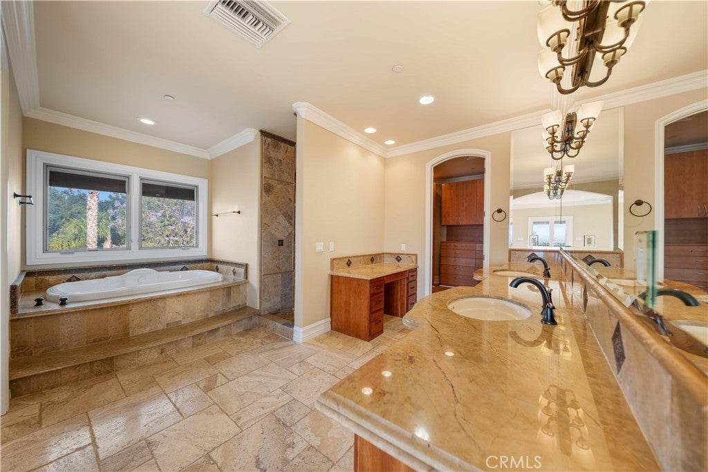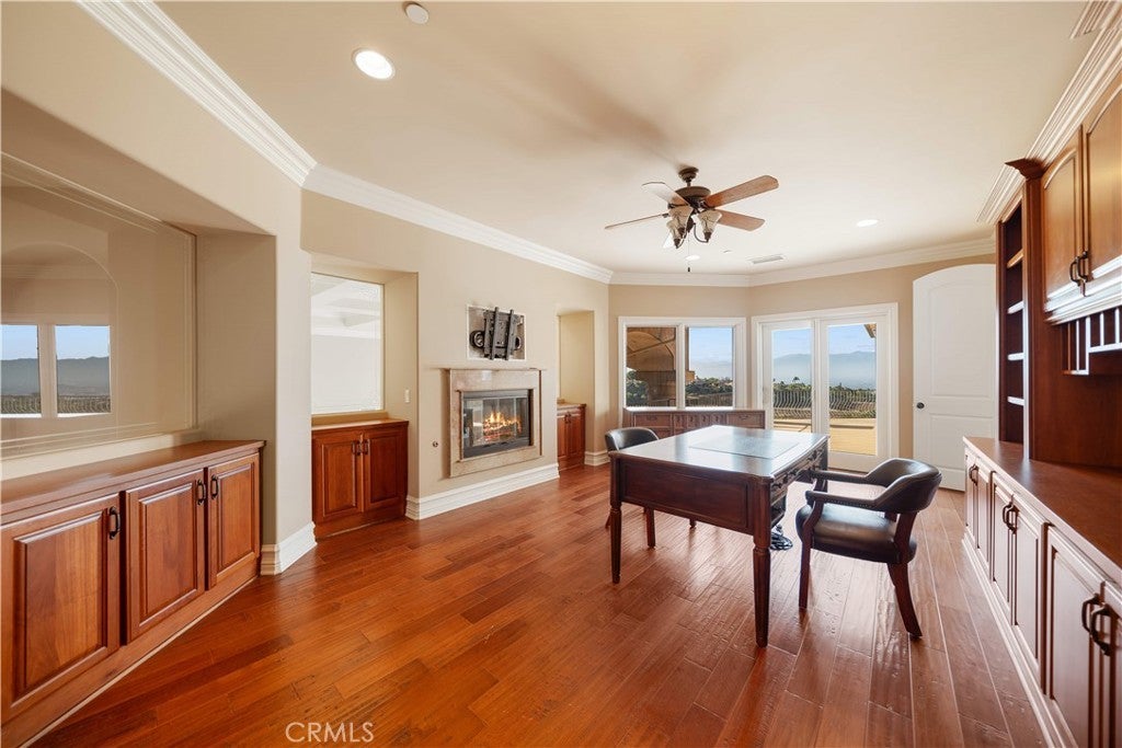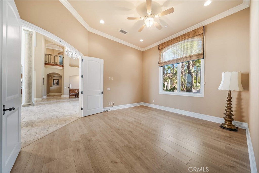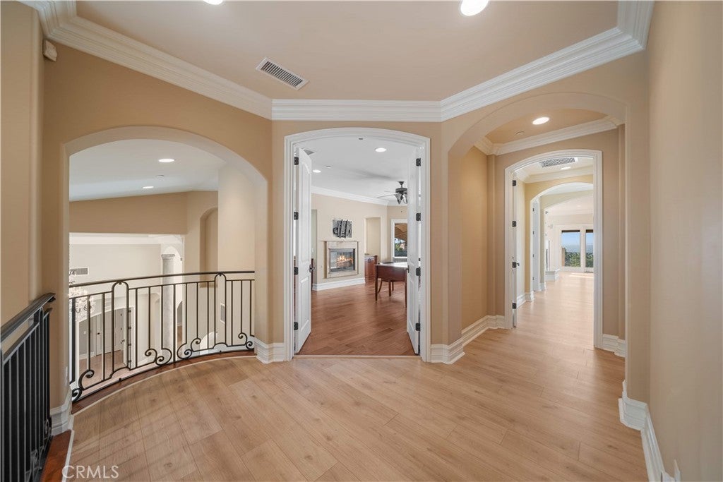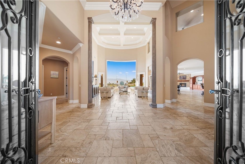 Welcome to your own private resort paradise—an extraordinary custom-built estate where every day feels like a luxury five-star getaway while enjoying complete privacy and tranquility. Hidden behind private gates, this architectural masterpiece is a rare offering, meticulously designed with uncompromising craftsmanship, refined elegance, and exceptional attention to detail. Unlike any semi-custom homes in Corona, this residence stands in a class of its own. Upon arrival, dramatic floor-to-ceiling glass walls immediately reveal breathtaking panoramic views of the city skyline and surrounding mountains, creating a stunning visual experience that carries throughout the home. Designed for both luxury living and grand entertaining, the estate offers five generously sized en-suite bedrooms, A private office on the second floor captures sweeping city views, providing an inspiring and peaceful environment for work or reflection. At the heart of the residence is a spectacular chef’s kitchen—a true showpiece for culinary enthusiasts. Outfitted with top-of-the-line stainless steel appliances, elegant granite countertops, an expansive center island, and a large walk-in pantry, the space is both sophisticated and highly functional. The kitchen opens seamlessly to the spacious family room, creating a perfect setting for both intimate gatherings and large-scale entertaining. Step outside and experience resort-style living at its finest. The outdoor living spaces are thoughtfully designed with built-in eaves providing shade over the surrounding deck areas, all centered around a breathtaking oversized infinity-edge pool. From here, enjoy mesmerizing city lights and mountain vistas in complete privacy. The estate is fully gated and secured with a state-of-the-art electronic system, complemented by impeccable landscaping that enhances the serene and exclusive atmosphere of the property. Additional highlights include a four-car garage, no HOA, and a low tax rate. Ideally located within an excellent school district and offering convenient access to major transportation routes, the home is just a short 25-minute drive to Orange County. This remarkable custom luxury estate presents a rare opportunity to own a truly one-of-a-kind residence designed for those who appreciate privacy, elegance, and the very finest in Southern California living.