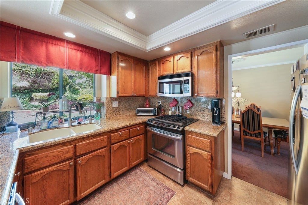 Beautiful 3-bedroom, 2.5-bath home located in one of Chino Hills’ most sought-after neighborhoods. This well-appointed residence features a formal living room and dining room, ideal for both everyday living and entertaining. The kitchen offers granite countertops and newer appliances, opening to a warm and inviting family room with a cozy fireplace. The spacious master bedroom includes a walk-in closet and a recently remodeled master bath. The second bedroom also features a walk-in closet and shares a convenient Jack-and-Jill bathroom with the third bedroom. Step outside to an enchanting backyard designed for entertaining, complete with a covered patio, built-in barbecue, raised corner patio, mature fruit trees, and ample space for play or relaxation. Additional highlights include a whole-house fan, separate laundry room, and a walk-in pantry - adding comfort and functionality throughout. Conveniently located near award-winning schools, parks, and shopping.