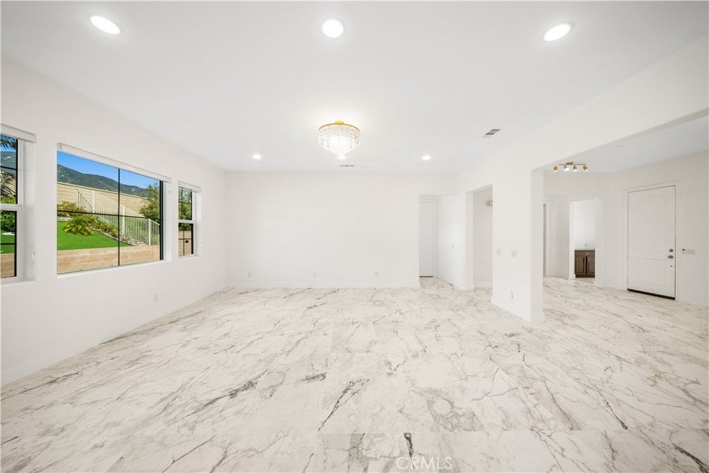 Nestled at the end of Cul de Sac within the prestigious gated community of Rancho Etiwanda Estates, this 5-bedroom, 4.5-bathroom masterpiece offers 4,306 sq. ft. of pure luxury. No expense was spared in this meticulously upgraded home, which sits on an expansive 10,125 sq. ft. lot. The main floor features imported Italian stone like tile flooring and a convenient guest suite perfect for visitors or multi-generational living. The gourmet kitchen has been fully remodeled with quartz countertops, a 6-burner range, and a powerful new vent hood. For serious home chefs, a rare enclosed prep kitchen adds ultimate functionality. Upstairs, you’ll find plush, textured carpeting and a massive, sun-drenched master suite. The master bathroom features a separate soaking tub and walk-in shower, while the extra-large walk-in closet provides ample storage. Large, bright windows in the suite frame an incredible 180-degree view of the snow-capped mountains. The backyard is a private oasis with mature landscaping, water-efficient artificial turf, and premium pavers. With no rear neighbors, you can enjoy total serenity and the best views in the neighborhood.