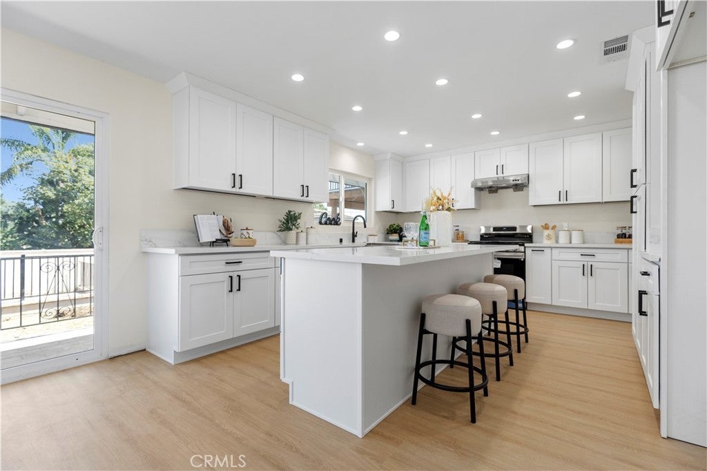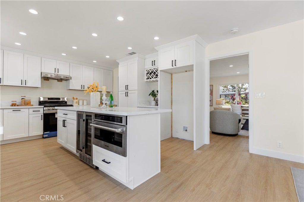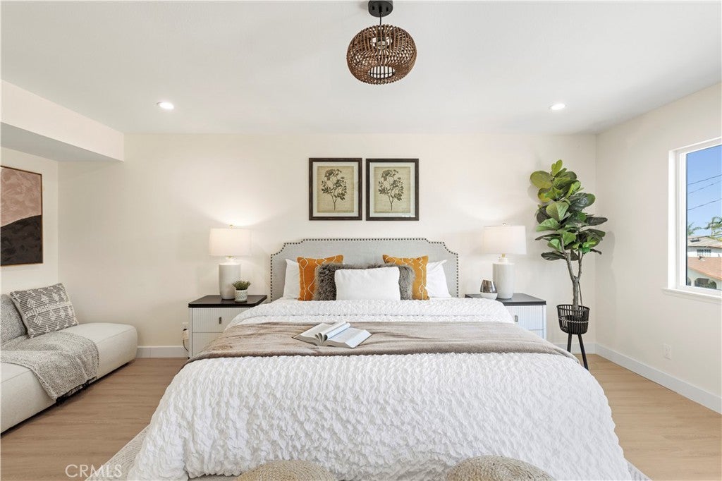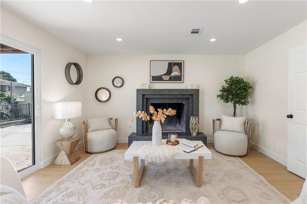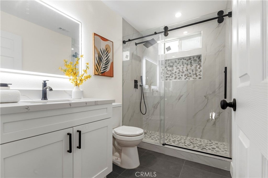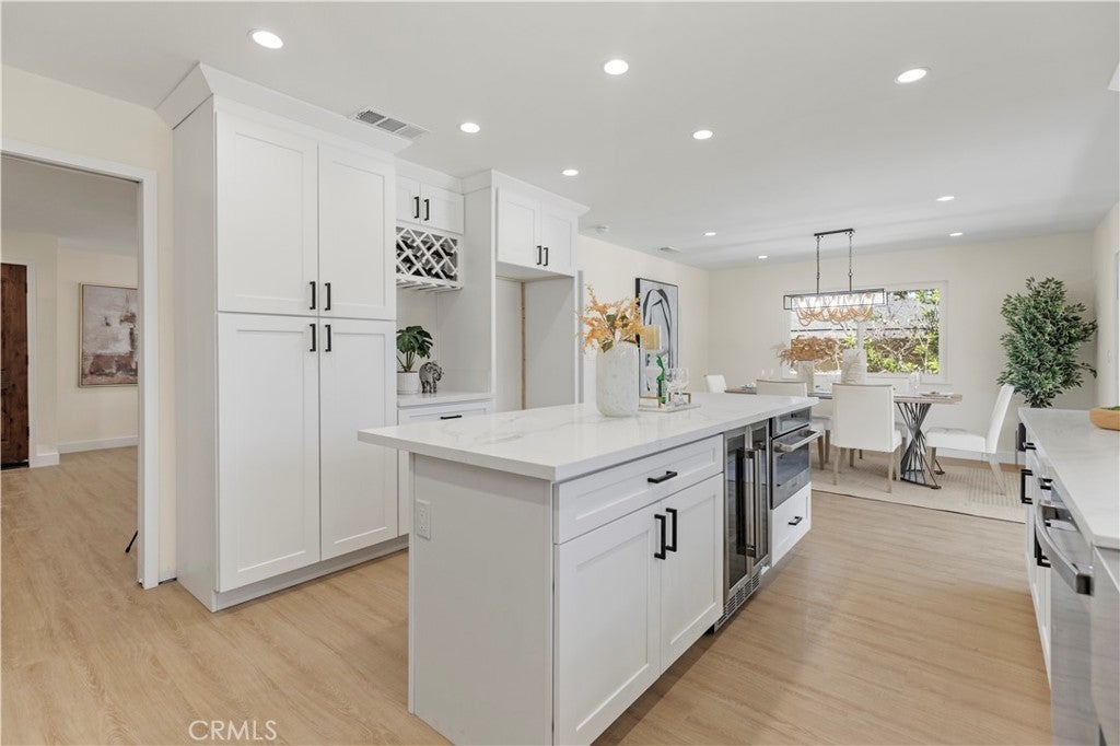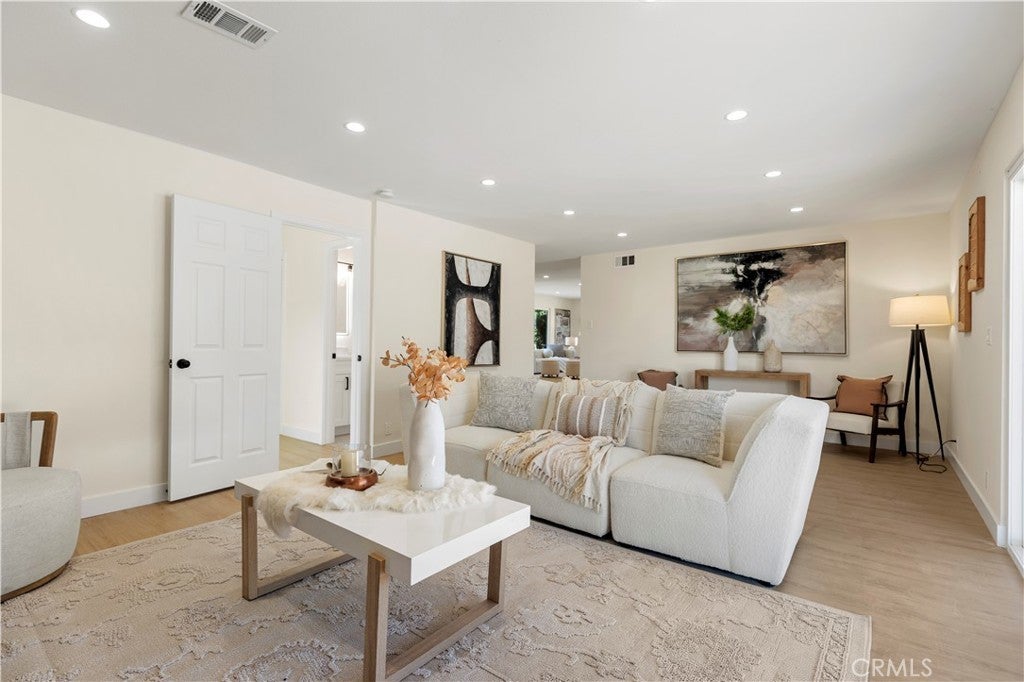 Welcome to 645 Lancer Lane, a beautifully reimagined residence located in one of Corona’s most desirable neighborhoods known for its custom homes, spacious lots, and quiet residential setting. Set on an expansive 10,454 sq ft lot, this fully remodeled home offers approximately 2,377 sq ft of thoughtfully designed living space featuring 4 bedrooms and 5 bathrooms, including a highly desirable main-level bedroom and bath—ideal for guests, multigenerational living, or a private home office. From the moment you enter, the home showcases a bright open layout enhanced by wide plank flooring, recessed lighting, and contemporary designer finishes. The spacious living room and dining area flow seamlessly into the beautifully updated chef's kitchen, featuring abundant cabinetry, generous counter space, a center island with wine cabinet, embedded microwave and breakfast seating. A large family room with statement fireplace provides an inviting space for gathering and entertaining, with direct access to the backyard for effortless indoor-outdoor living. Upstairs offers three well-appointed bedrooms along with three bathrooms, providing exceptional flexibility and privacy. A standout feature of the home is the private outdoor deck, perfect for enjoying sunset views, morning coffee, or relaxing evenings overlooking the neighborhood. The backyard is designed for Southern California lifestyle living, complete with a private pool, expansive patio areas, and generous space for entertaining or creating your own outdoor retreat. Additional highlights include: • Three-car garage (approx. 775 sq ft) • Large driveway and potential RV access from rear alley • Spacious and functional floor plan • Modern interior renovation throughout • Walking distance to local schools and parks Combining modern upgrades, generous living space, and an oversized lot, this beautifully updated property offers a rare opportunity in the sought-after Lancer Lane community. Buyer to verify all information including square footage and property details.