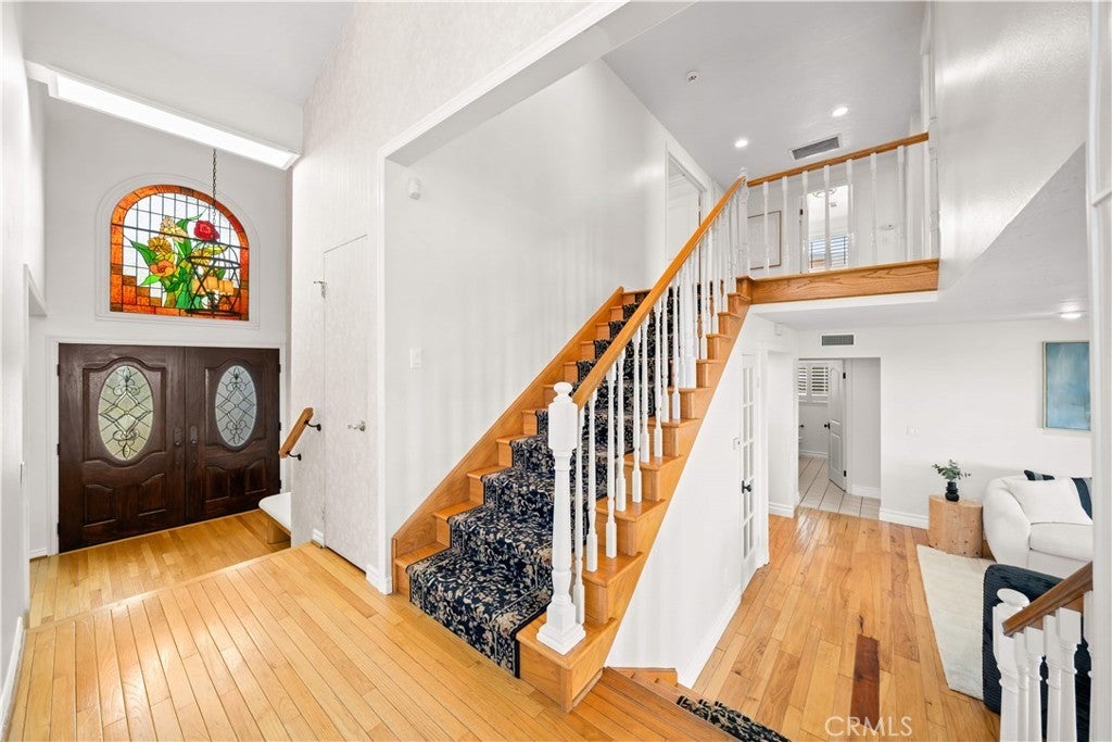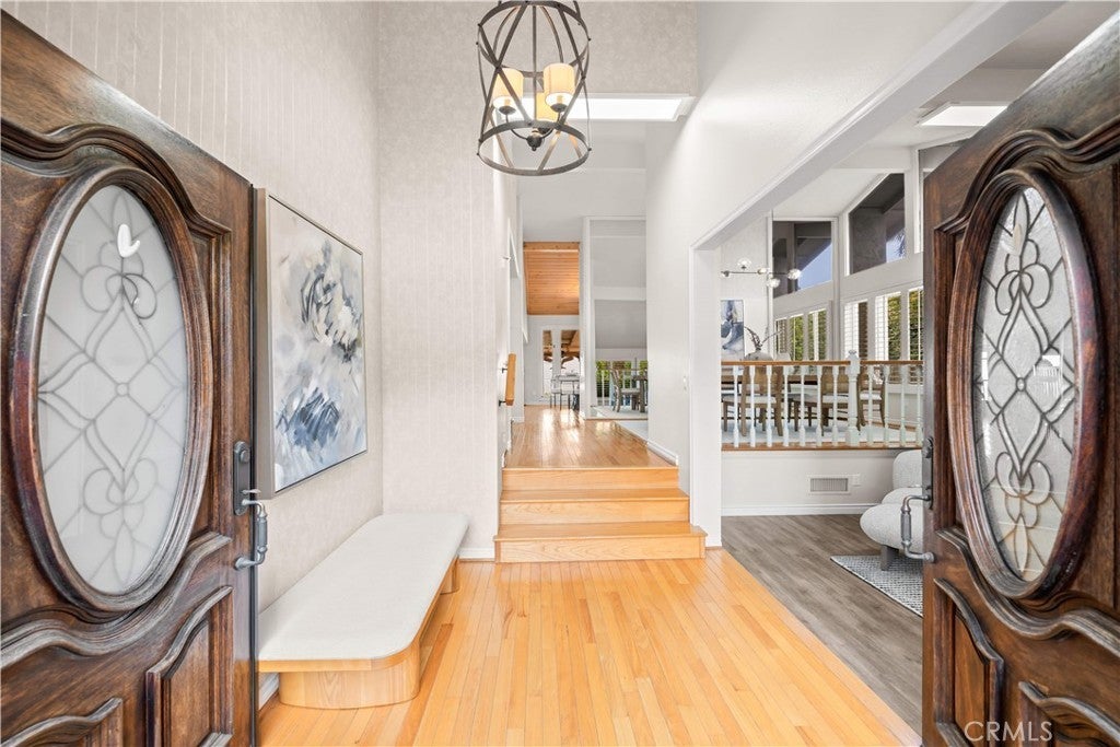 Spectacular custom built home, located in the Rancho Palos Verdes Estate with both amazing city light views and panoramic ocean views is now available. This privately double gated estate boasts 4 large bedrooms including one being used as office downstairs. The minute you enter you can see the exquisite detail design of art work on the floor with height ceilings. As you continue you have a first floor living room, formal dining room, office, one full bathroom, family room with fireplace and wet bar that features a double French door out to the gorgeous backyard, formal dining room open to the grand kitchen with top-of-the-line appliances, custom cabinets with granite counters, large island with an additional vegetable sink. Upstairs offers 3 more large bedrooms including the primary suite with double private entrance, French doors to the large walk out veranda, gorgeous mountain views, expansive walk-in closet, and ocean breathe. Outside you enter the backyard oasis with custom designed spa. All of this providing you with resort style living at home. Conveniently located near shopping, eateries and Award winning Palos Verdes schools. Minutes from most popular surfing beaches and world famous hotels and Trump National Golf Course and Terranea resorts.