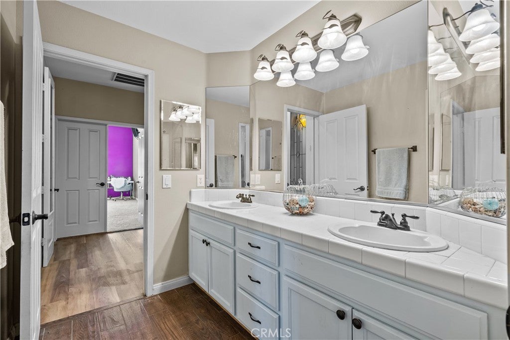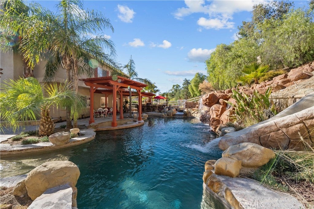 Welcome home to your own private resort-like paradise… 15355 Michael Crest Drive located in the exclusive Ridgecrest Estates tract in Sand Canyon! This gorgeous home is situated on a tranquil cul-de-sac and offers 5 bedrooms, 4 bathrooms encompassing 4276 sf on over a half acre lot. Entertainer’s yard featuring an oversized pebble tec pool & spa adorned with beach entry, two waterfalls, slide, swim up bar, firepit, built-in bbq bar, elevated yard design with two covered patios, large grassy area, and a covered RV/boat access. Very quiet, secluded location but conveniently located minutes away from Robinson Ranch Golf Course, restaurants, shopping, freeways, hiking & horse trails, and so much more. Plus no HOA or Mello Roos!