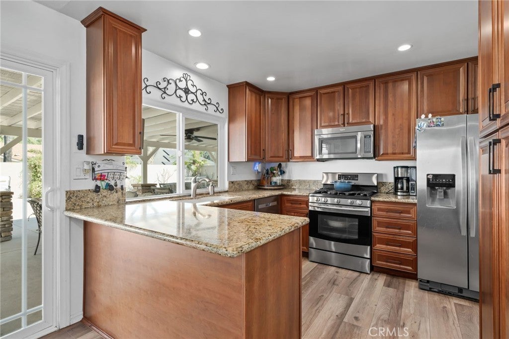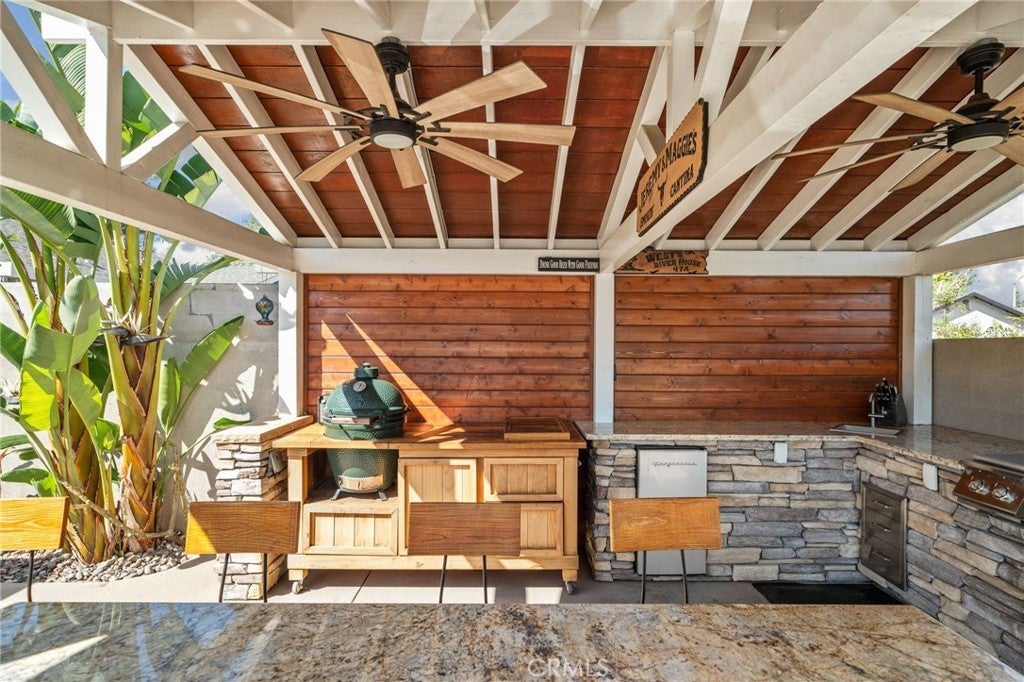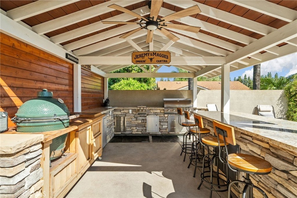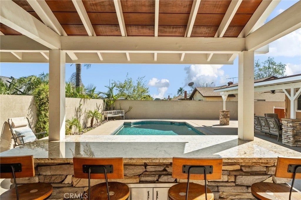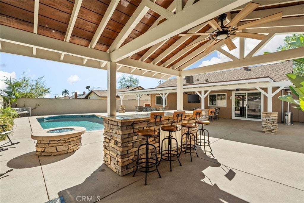 This is the one you have been waiting for! Welcome to 1417 S. Magnolia Ave, a beautifully upgraded home featuring a true entertainer’s backyard oasis with a pool, covered patio, outdoor kitchen, and custom fire pit. This property has been thoughtfully updated inside and out, offering comfort, style, and resort-style outdoor living. Pride of ownership! The backyard is built for entertaining, highlighted by a Pebble Tec pool with new tile and equipment, a built-in natural gas fire pit, and a spacious 40’ x 16’ covered patio with ceiling fans—perfect for year-round gatherings. The custom outdoor BBQ area includes stainless steel cabinets, granite countertops, and a natural gas cooktop, creating the ideal space for hosting family and friends. Architectural color concrete, tropical landscaping, block walls with stucco finish, accent lighting, and smart sprinkler and lighting systems complete the private, resort-like setting. Inside, the home has been tastefully upgraded with remodeled kitchen cabinets, upgraded appliances, new flooring, recessed lighting, fresh paint, and updated finishes, along with improvements to the master bath. Modern architectural doors throughout. The home also features new windows and doors, enhancing energy efficiency and giving the home a clean, updated look. Exterior upgrades include a 75-year architectural roof, new stucco, rock veneer accents, artificial turf landscaping, and new concrete work, giving the property outstanding curb appeal and long-term durability. If you are looking for an updated home with a pool, patio, outdoor BBQ area, and covered entertaining space, this one truly has it all. Don’t miss the opportunity to own one of the best entertaining homes in the area.