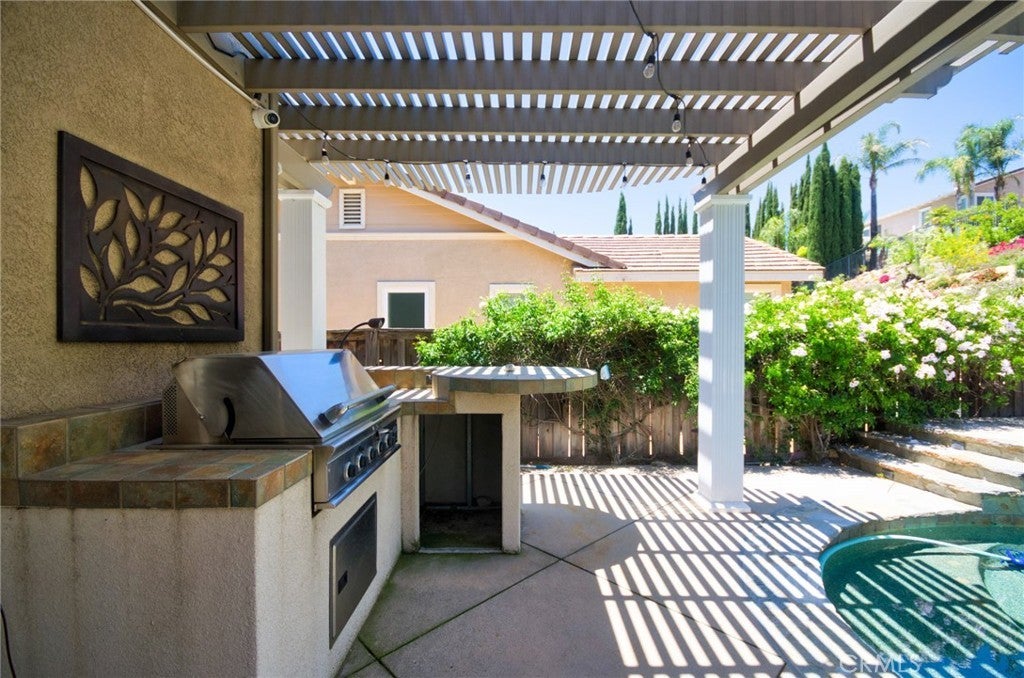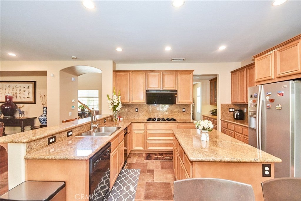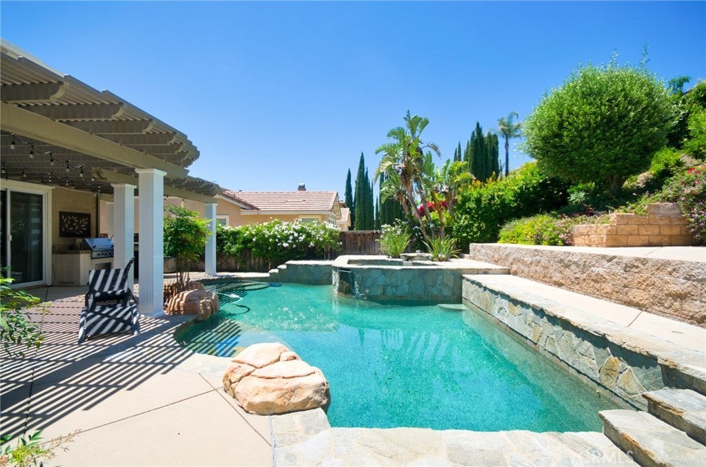 Beautiful Rancho Cucamonga Entertainer's Dream Home. This property has it all: Hard-to-find first floor master bedroom & bath, High ceiling formal living room, Large family room, kitchen with custom cabinets, granite counters and backsplash, black appliances, dual oven, trash compactor, butlers pantry, family room with a stone fireplace and multiple built-in shelves, Jacuzzi tub in master with a stand-alone shower as well as custom closet organizer, laundry room with cabinets and sink, upstairs loft and separate study area, wrought-iron staircase, and custom flooring and ceiling fans throughout. Garage includes custom storage units, epoxy flooring, security closet, can lighting and ceiling fan. Add to this over $150K spent on exterior upgrades which include front walkway pavers, iron gate to the RV parking, pool & spa that has a sit step, water feature and waterfall, outdoor fireplace with gas hookup, built-in BBQ island , Aluma wood patio cover, custom flagstone and concrete, designer landscaping throughout, indoor & outdoor surround sound, raised garden box with drip-system, and backyard lighting. Front door facing south.