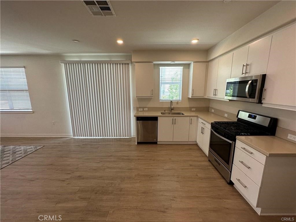 Contemporary and stylish two-story condo nestled in the highly desirable community The Resort! Prime location - just moments from Ontario Mills, dining, entertainment and easy access to freeway 10 & 15. 3-bedroom, 2.5 bathroom with lots of upgrades featuring stainless steel appliances, granite countertops, and ample cabinet space and a open concept living space that seamlessly connects the living, dining, and kitchen areas. Large windows flood the interior with natural light, creating a bright and welcoming atmosphere. Enjoy outdoor living on your private patio, perfect for alfresco dining, relaxation, or container gardening. It's an inviting space to unwind after a long day. Upstairs, you'll find a generous master suite offering privacy, comfort, and convenience. The suite features walk-in closet and en-suite bathroom with modern fixtures and finishes. Additional 2 bedrooms sharing a full bath. Also, there is a dedicated laundry area on the upper level with space for a full-size washer and dryer. This home is part of a well-maintained community with lush landscaping, manicured grounds, and common areas for residents to enjoy. Community amenities include a pool/spa, clubhouse, parks, outside eating and BBQ area.